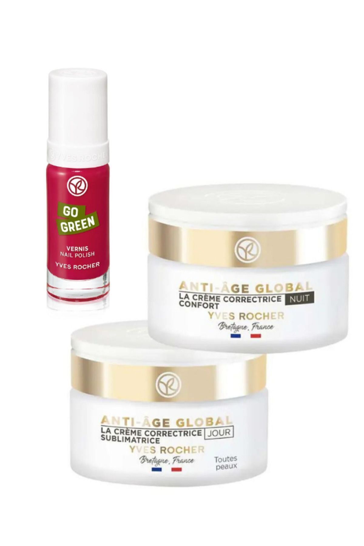 Yves Rocher Daily Moisturizing Routine Set Day and Night Cream - Regenerating Anti-Aging / Nail Polish Gift
