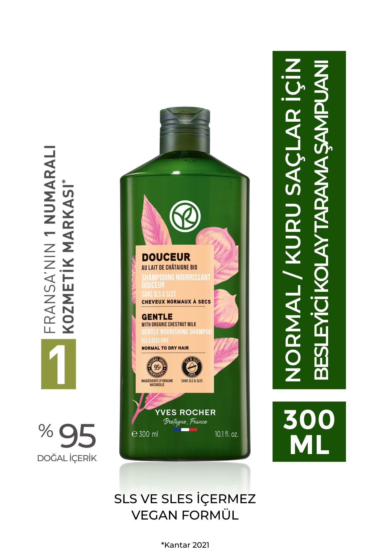 Yves Rocher (Doucer) Nourishing Easy Combing Shampoo for Normal/Dry Hair - Salt-Free & Vegan-300 ml