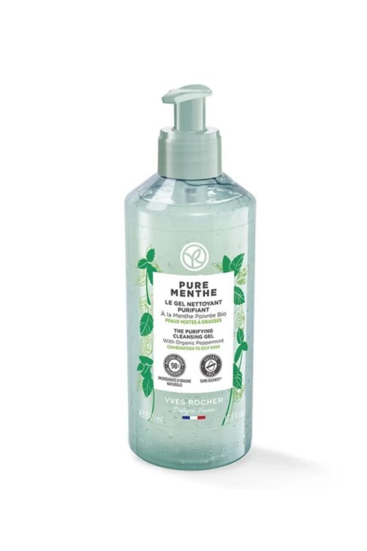 Yves Rocher Face Wash Gel - Combination and Oily Skin / Pure Menthe Pore Tightener and Prebiotic 390 ml