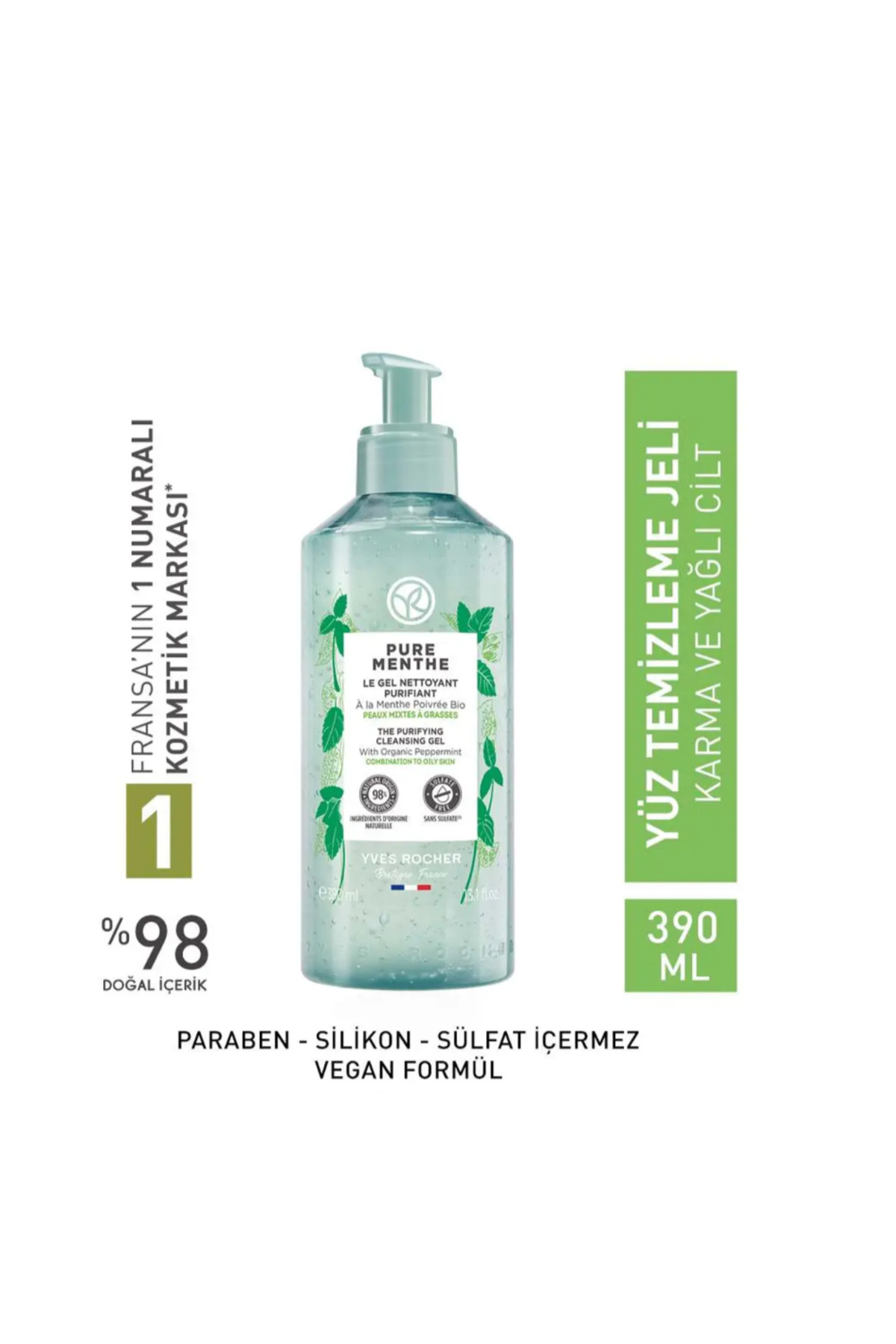 Yves Rocher Face Wash Gel Pure Menthe Pore Tightening and Deep Purifying - Prebiotic 390 ml