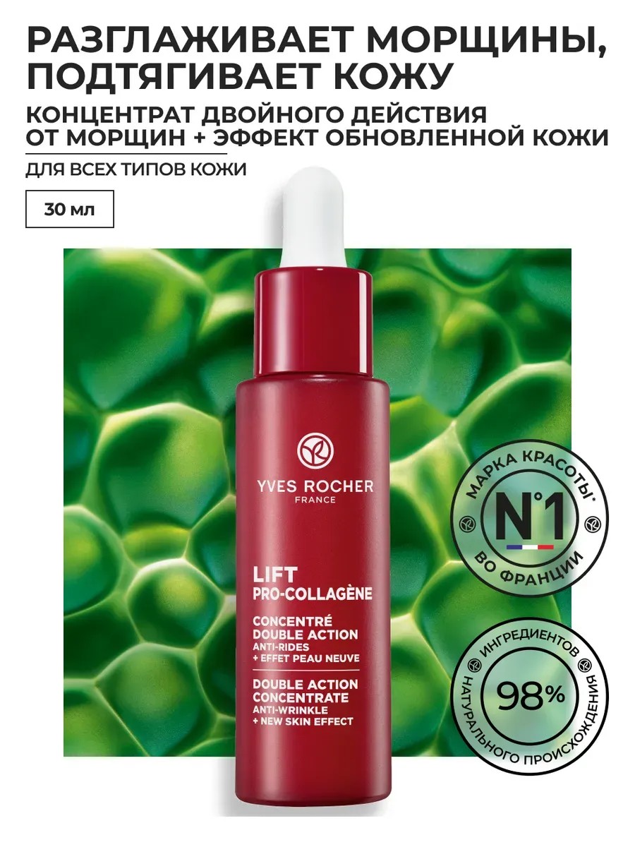 Концентрат Двойного Действия от Морщин + Эффект Обновленной Кожи улучшает текстуру кожи и заметно сужает поры, мгновенно делая цвет лица ровным и сияющим. Восстановленная и разглаженная, кожа словно преображается.