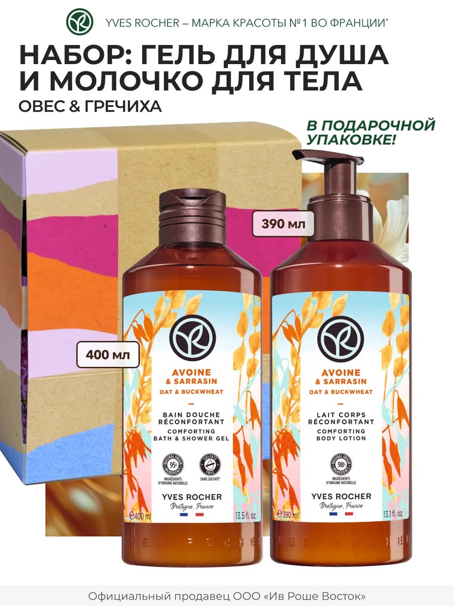 Подарочный набор косметики для ухода за телом с ароматом Овса и Гречихи Ив Роше представляет собой идеальное решение для тех, кто ценит органический и эффективный уход за кожей тела и рук. Набор для тела включает в себя средства для очищения и увлажнения, что делает его универсальным выбором для ежедневного ухода.