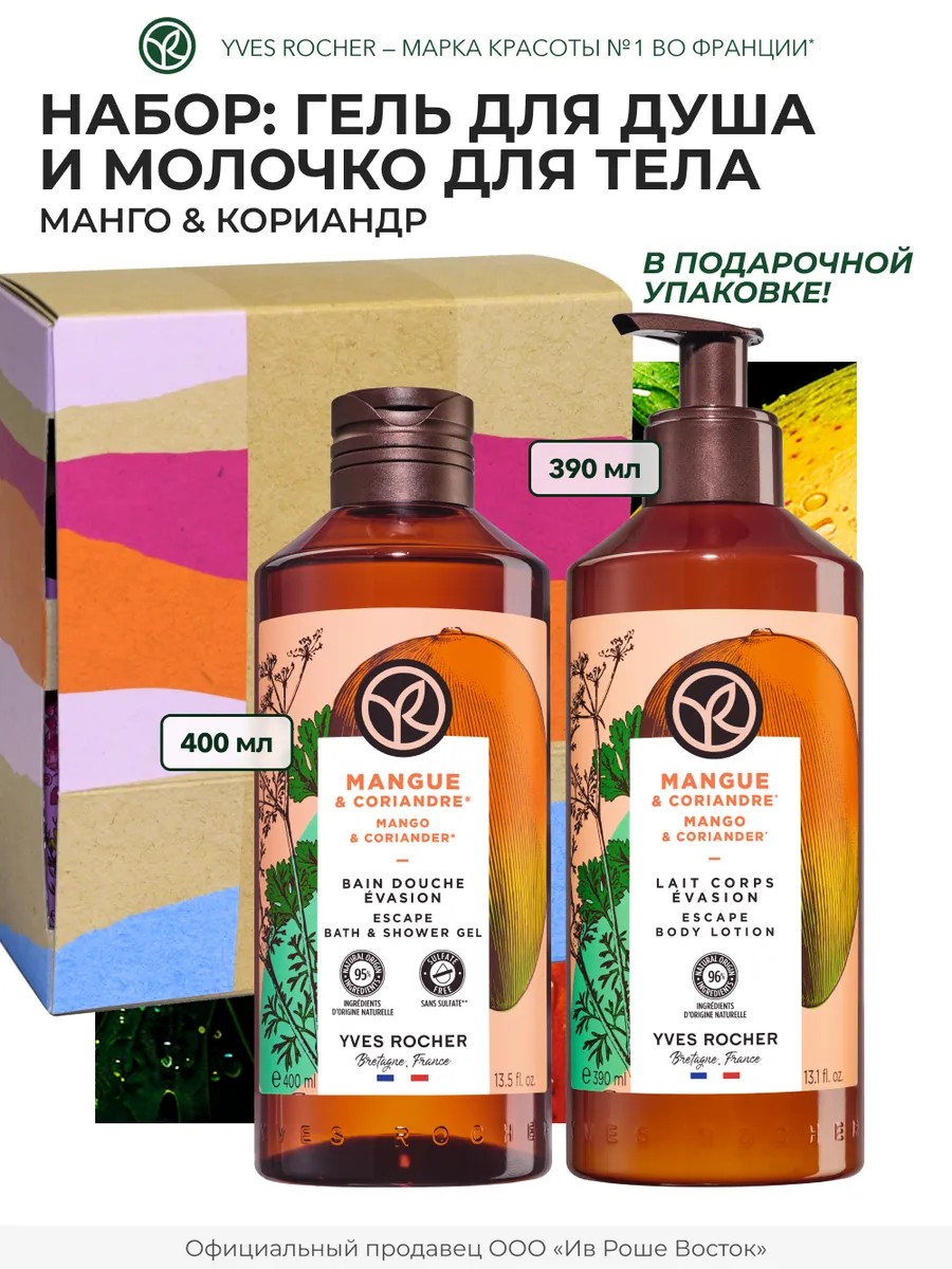 Подарочный набор косметики для ухода за телом с сочным манго и пряным кориандром Ив Роше представляет собой идеальное решение для тех, кто ценит органический и эффективный уход за кожей тела и рук. Набор для тела включает в себя средства для очищения и увлажнения, что делает его универсальным выбором для ежедневного ухода.