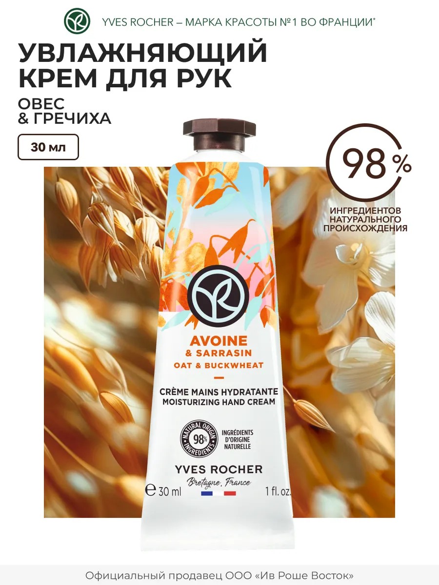 Прикоснитесь к самой природе с этим кремом для рук без силиконов и красителей, который увлажнит вашу кожу и придаст ей деликатный аромат. Мы в Ив Роше выбрали неповторимую композицию Овса и Гречихи с бархатистыми нотами – миндальными, молочными, ванильными и кокосовыми.