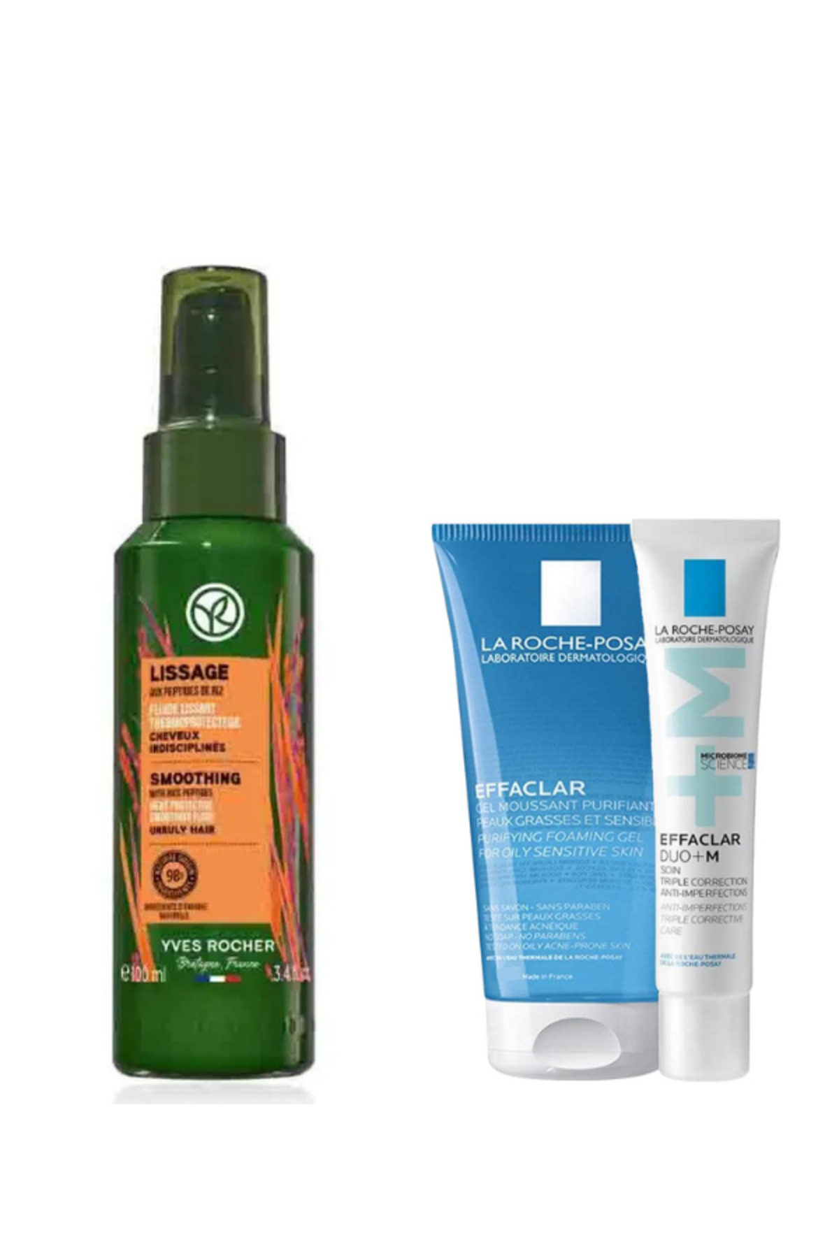 Yves Rocher Heat Protect Prebiotic Serum - Frizzy Hair + LaRochePosay Anti-Acne Travel Size Kit