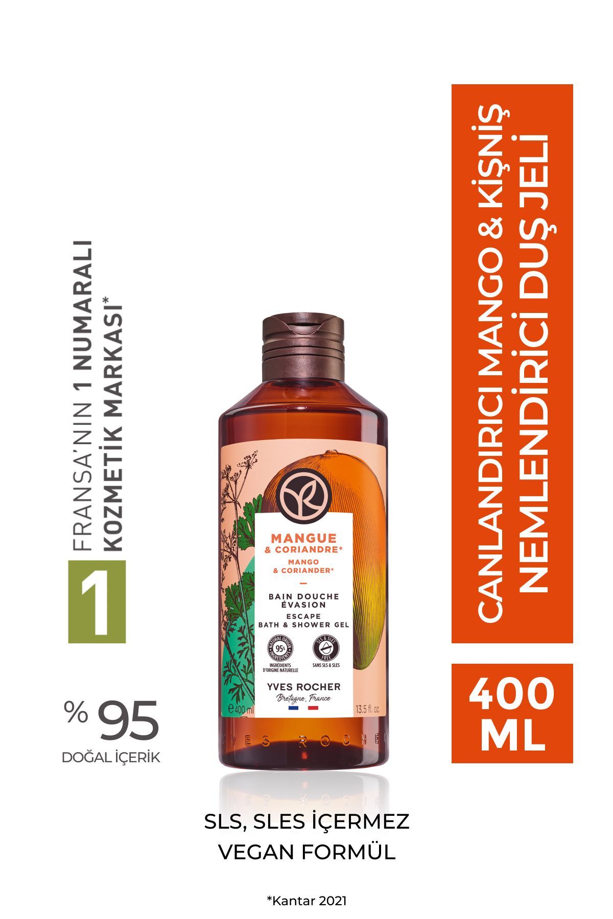 Yves Rocher Moisturizing Shower Gel - Revitalizing Mango Coriander- 400ml-46666