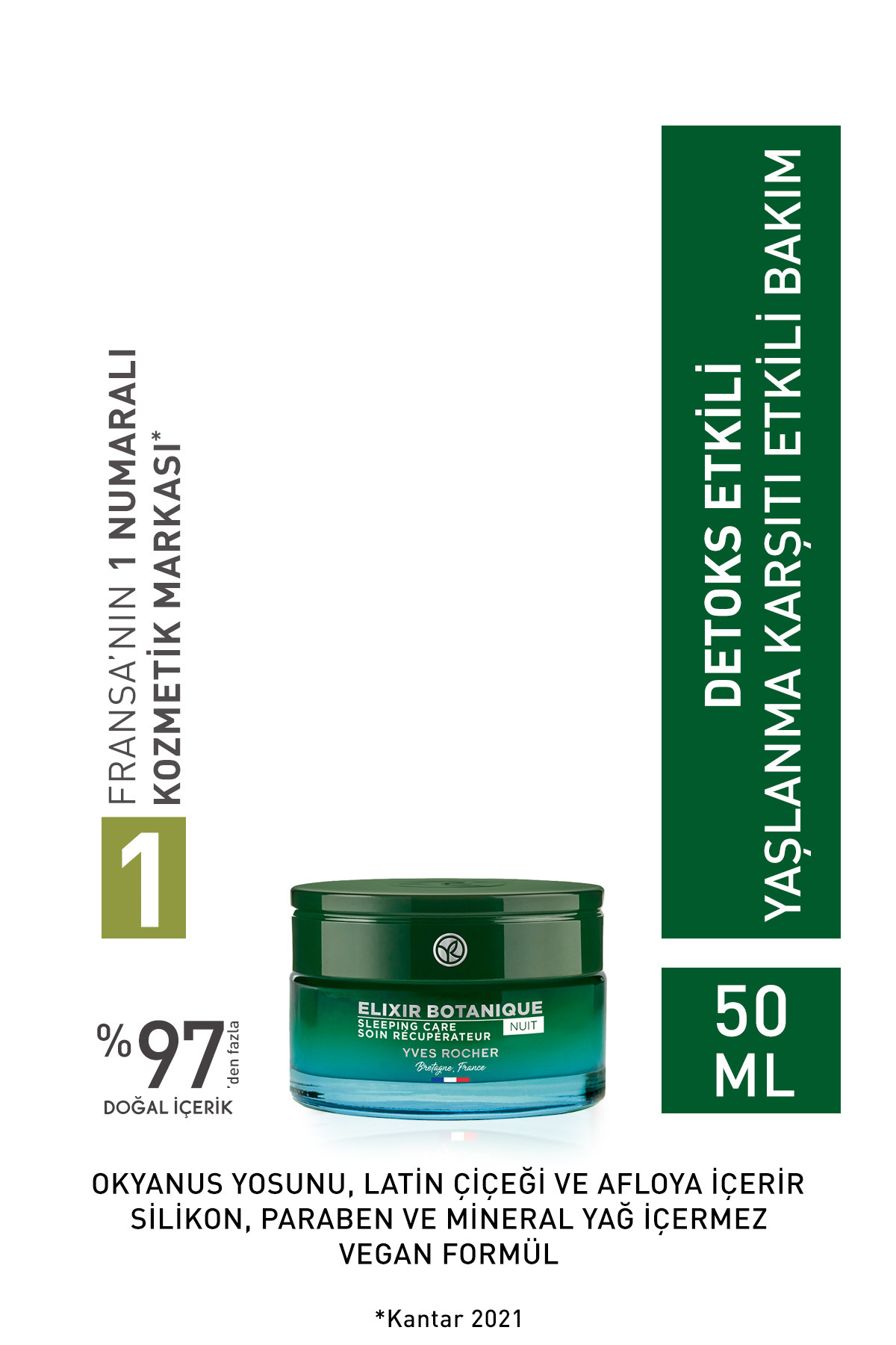 Yves Rocher NIGHT CREAM - ANTI-AGING HERBAL ANTIOXIDANT CARE-ELIXIR BOTAN QUE-50 ML KEYON1225