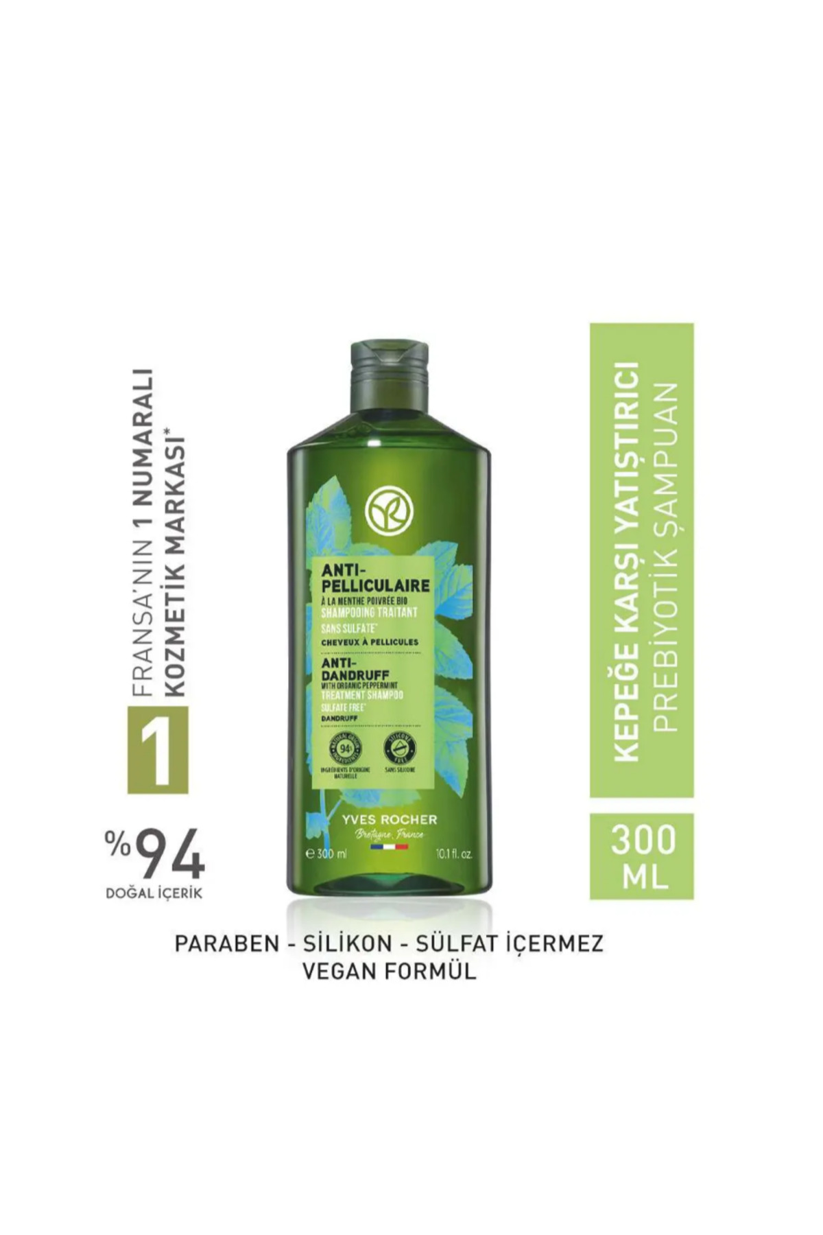 Yves Rocher Prebiotic Shampoo Anti-Dandruff Pelliculaire Pomegranate Peel Organic Mint and Agave 300 ml