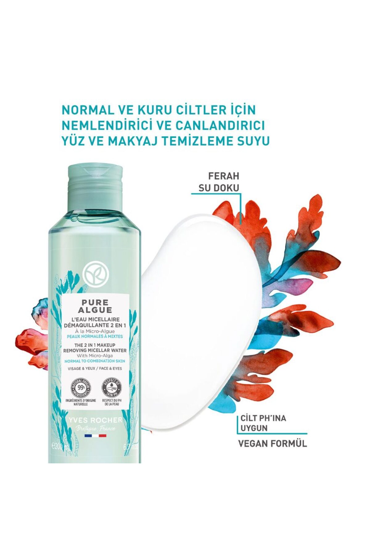 Yves Rocher Pure Algue-Detoxifying Moisturizing and Revitalizing Micellar Water with Prebiotics 200ml