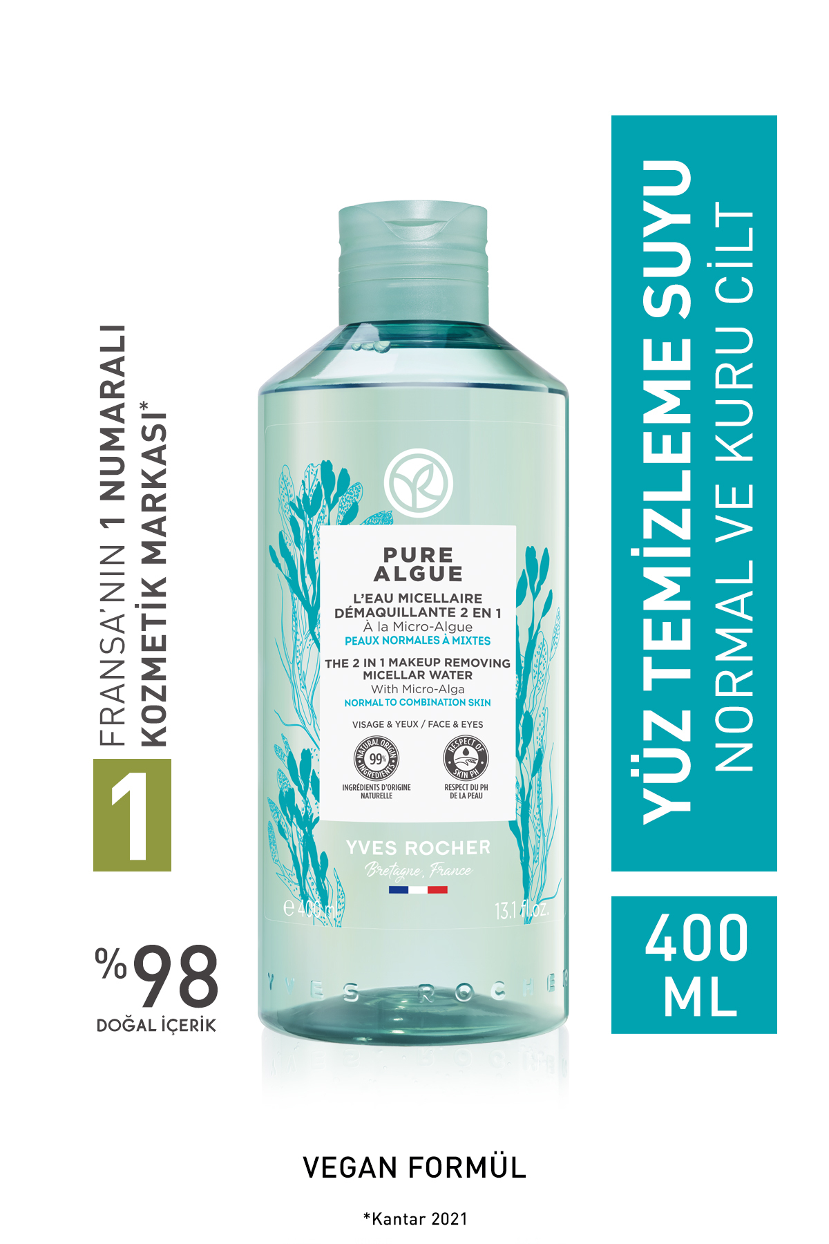 Yves Rocher Pure Algue Prebiotic Micellar Water for Normal and Dry Skin - 400 ml