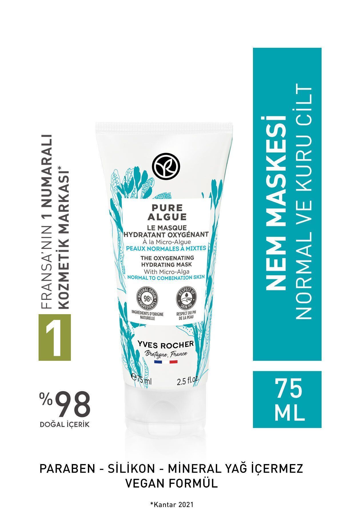 Yves Rocher Pure Algue Prebiotic Moisture Mask for Normal and Dry Skin - 75 ml
