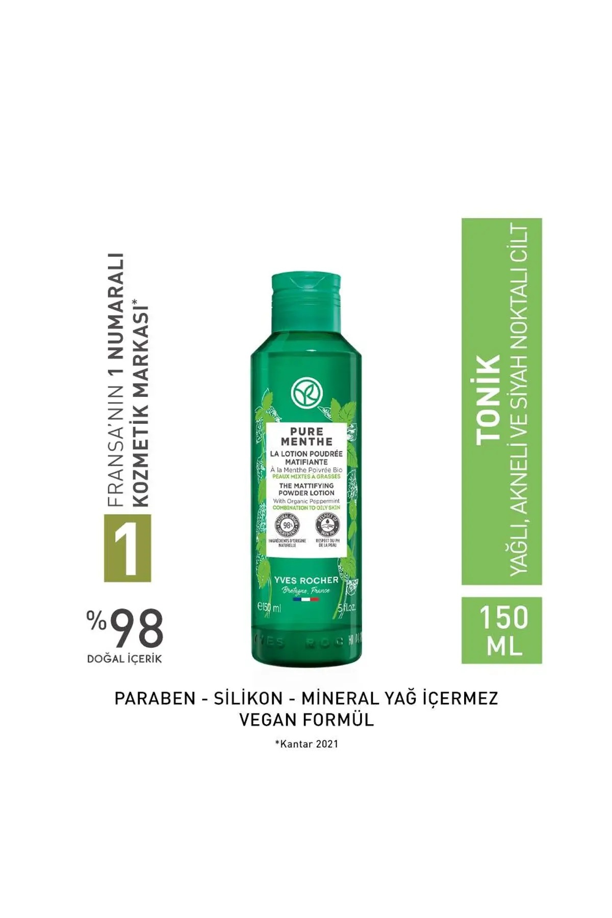 Yves Rocher Pure Menthe-Instant Mattifying Purifying Toner with Prebiotic & Glycolic Acid 150ML