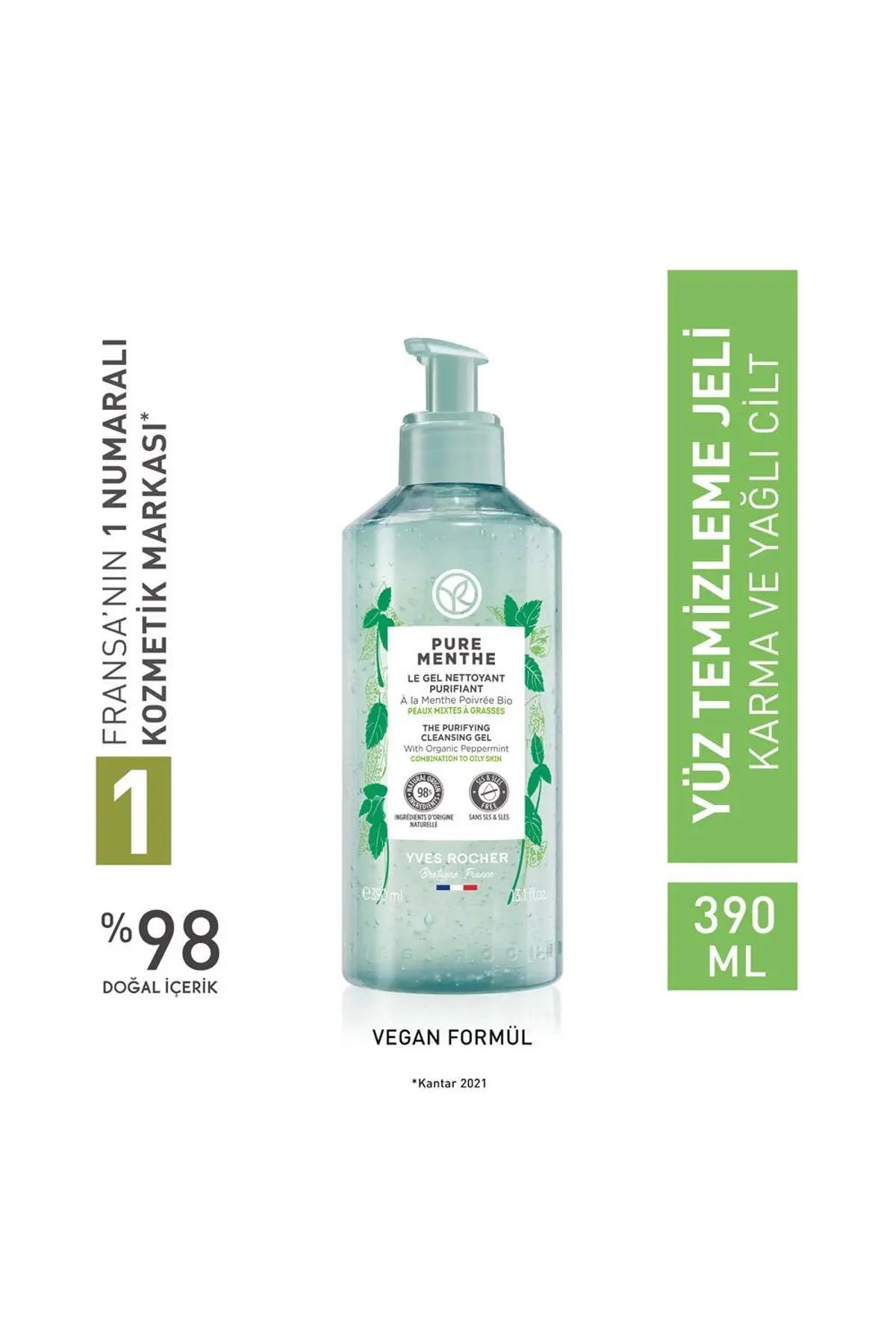 Yves Rocher Pure Menthe Prebiotic Face Wash Gel for Combination and Oily Skin - 390 ml