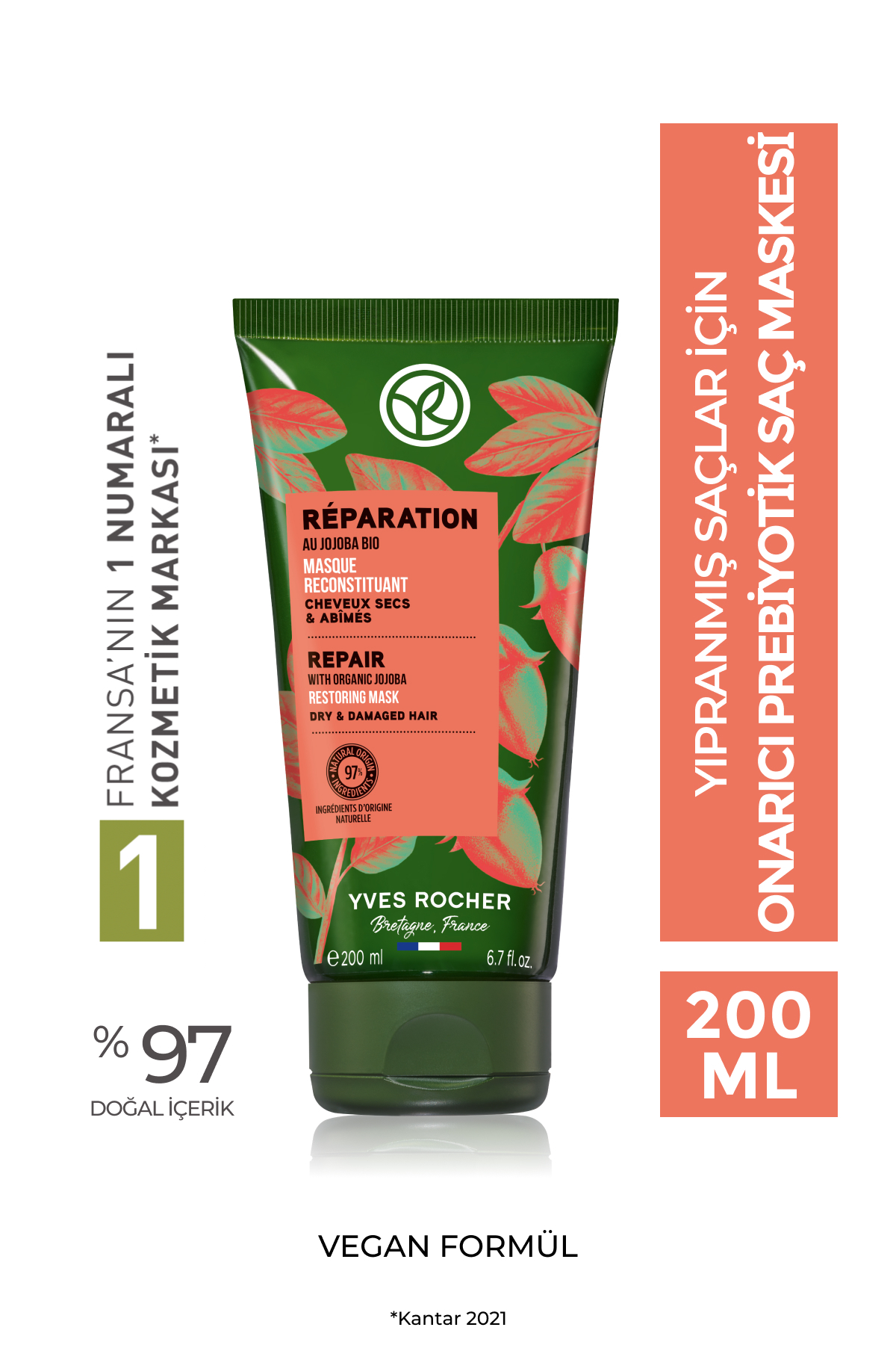 Yves Rocher Repairing Prebiotic Hair Mask for Damaged Hair (reparation) - Vegan-200 Ml