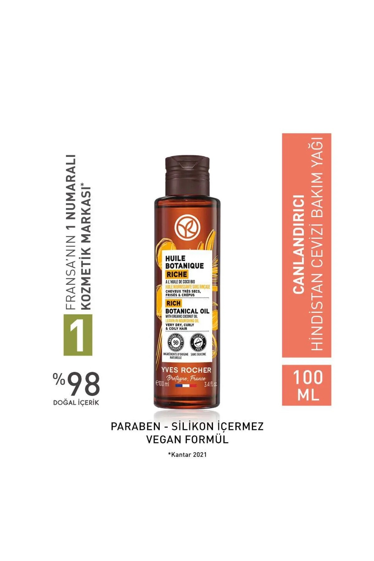 Yves Rocher Revitalizing (Huile Botanique) Coconut Prebiotic Care Oil - Vegan-100 ml