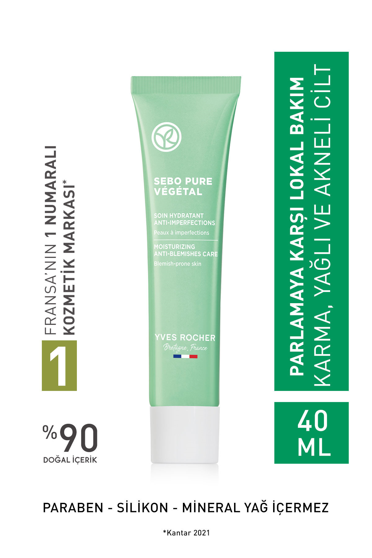 Yves Rocher SEBO PURE VEGETAL GEL CREAM ACNE PRONE SKIN-ZINC-HERBAL SALICYLIC ACID-ALLANTOIN-40G KEYON1238