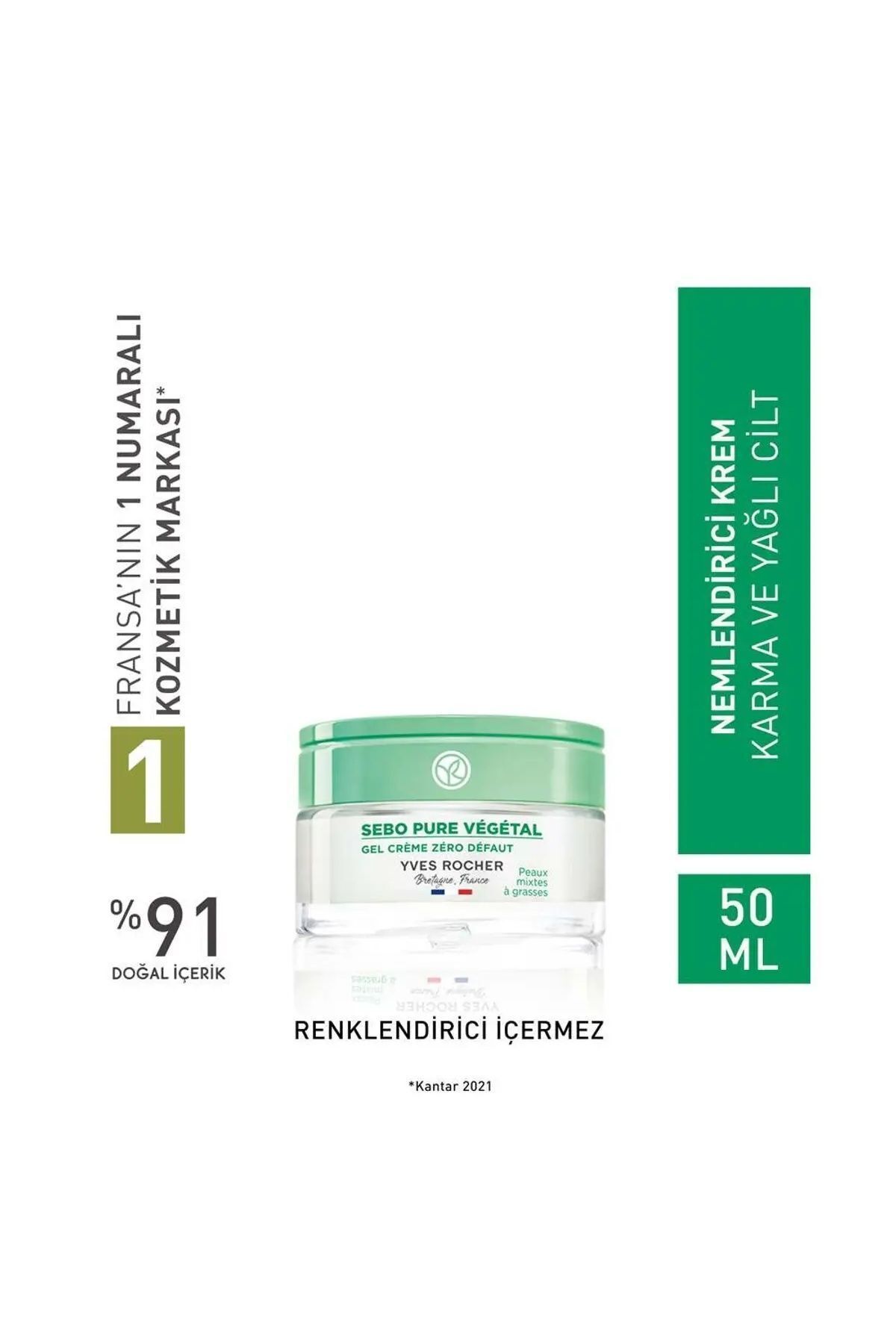 Yves Rocher Sebo Pure Vegetal Gel Cream for Combination and Oily Skin - Zinc & Salicylic Acid - 50 Ml