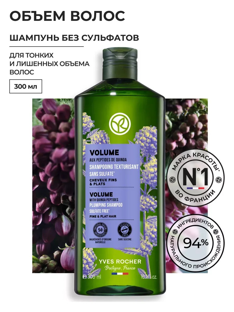 Обогащенный Пептидами Киноа, шампунь придает объем от корней. Волосы выглядят более густыми и более объемными.