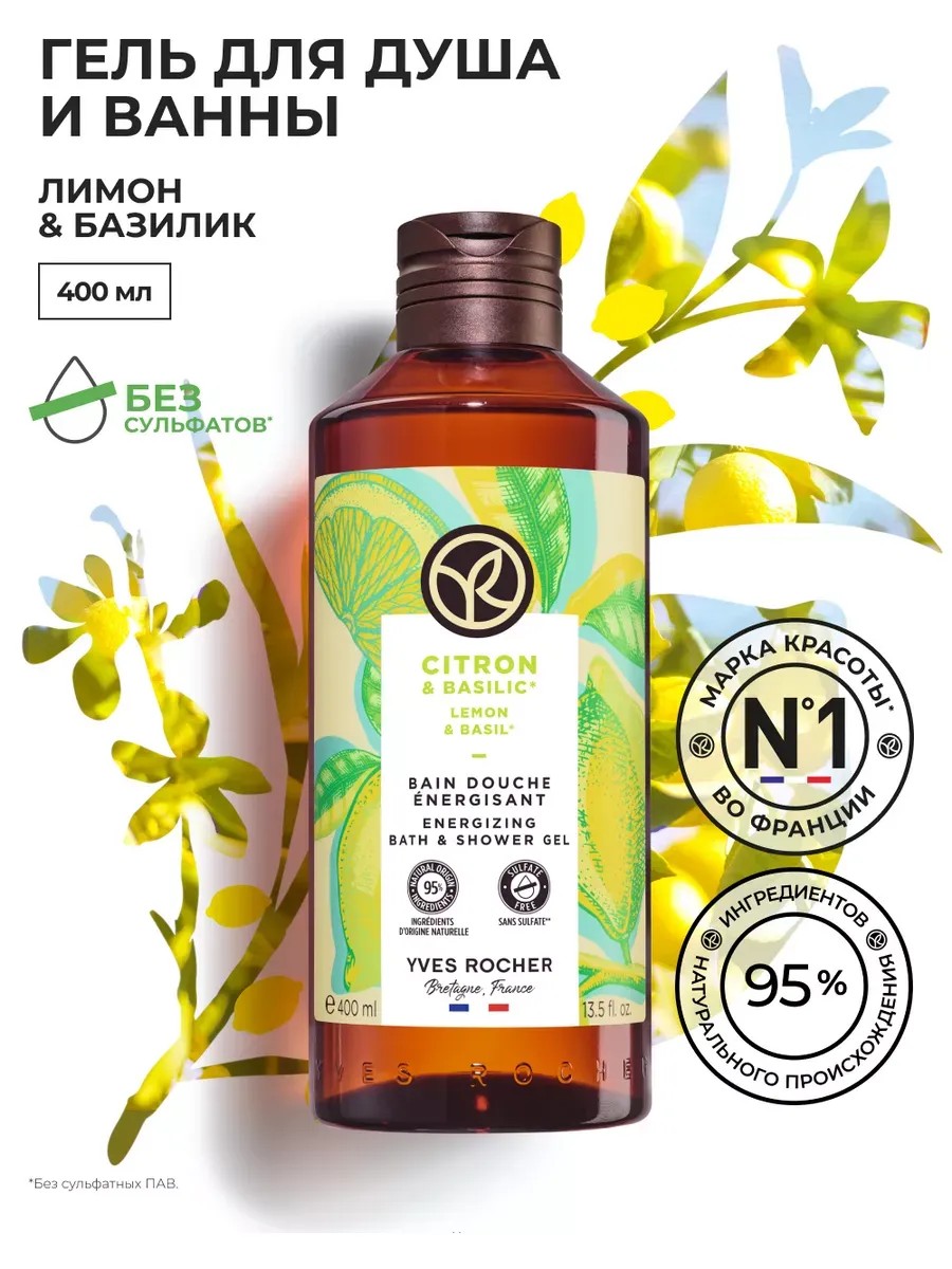 YVES ROCHER Гель для душа и ванны «Лимон & Базилик», 400МЛ