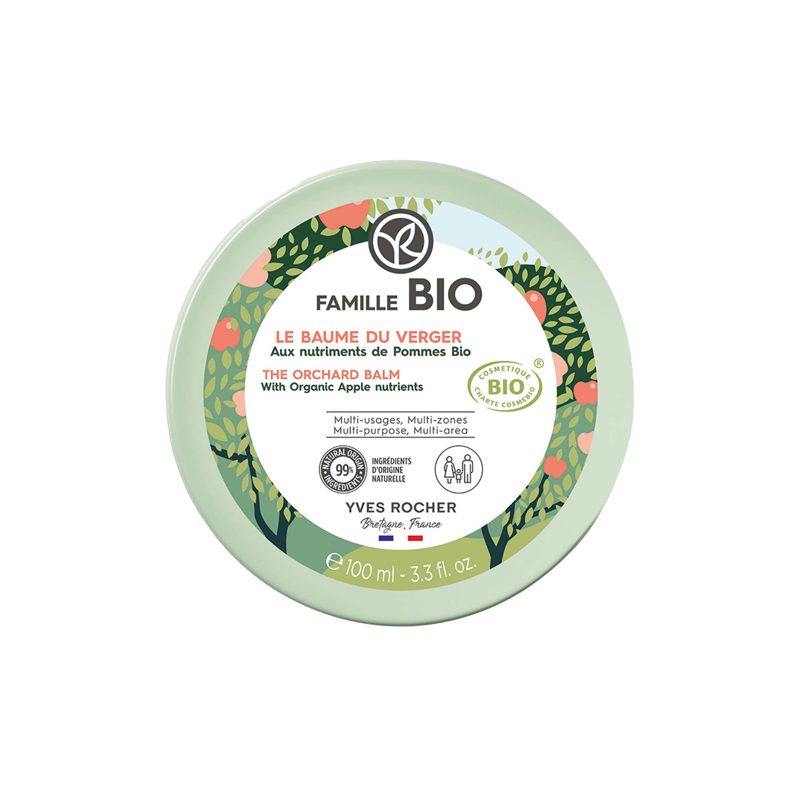 Results: - 94 of respondents reported a reduction in skin tightness. - 92 of respondents reported their skin felt comfortable. - 92 of respondents reported their skin felt nourished. Application tips: Take a small amount of BB Balm and warm it in the palm of your hands. Apply with a few dabs and massage this rich, generous texture until fully absorbed. Use on all dry areas of the body as needed: Body: knees, elbows, heels. Hands: on the skin of the hands, cuticles, nails. Face: on the cheekbones, cheeks, forehead, chin, lips. Can also be used on the ends of the hair, beard, and eyebrows. To complete your Famille Bio skincare routine, discover the light moisturizing face cream and the gentle 2-in-1 shower gel for body and hair. Recycling guide: Separate the lid from the jar and place them in the appropriate container. Sealed: Remove completely and place in the yellow recycling bin. From 3 years. X 20 is the average score obtained, including X 5 for the eco-score of the Approve Family Test Panel, tests carried out in November 2022 on a panel of 100 families in France. Consumer test over 28 days - 106 volunteers INGREDIENTS HELIANTHUS ANNUUS (SUNFLOWER) SEED OIL • GLYCERIN • PYRUS MALUS (APPLE) FRUIT WATER • BUTYROSPERMUM PARKII (SHEA) BUTTER • SIMMONDSIA CHINENSIS (JOJOBA) SEED OIL • Aqua (WATER) • PY. RUS MALUS (APPLE) SEED OIL • PYRUS MALUS (APPLE) FRUIT EXTRACT • SODIUM COCOAMPHOACETATE • SCLEROTIUM GUM • LACTIC ACID • PARFUM FRAGANCE • CHONDRUS CRISPUS POWDER (CARRAGEENAN) • Potassium. SORBATE • TOCOPHEROL • CARAMEL • SODIUM GLUCONATE • SODIUM BENZOATE • CITRIC ACIDApplication tips: Take a small amount of balm and warm it in the palm of your hands. Apply in small dabs and massage this rich, generous texture until fully absorbed. Use on all dry areas of the body as needed: Body: knees, elbows, heels. Hands: on the skin of the hands, cuticles, nails. Face: on the cheekbones, cheeks, forehead, chin, lips. Can also be used on the ends of hair, beard, and eyebrows. Perfect for after-sun care and aftershave due to its soothing effect, but also for nourishing and moisturizing beards, nails, and lips. This rich, oil-based balm melts into the skin, providing a truly pleasurable experience and leaving it soft and comfortable. Leaves a delicately apple-scented veil. A multi-purpose treatment balm with excellent nourishing and comforting benefits, ideal for all dry areas of the body, face, lips, hair ends, etc. Apply in small dabs to the skin of the whole family. . This essential balm deeply nourishes and protects even the driest skin, thanks to its concentrate of organic apple actives and a combination of oils including organic apple seed oil.Yves Rocher - Crème en baume essence multi-usages familial - Peaux sèches et extra-sèches - Actif de pomme biologique - 100 mlDESCRIPTION DU PRODUIT DESCRIPTION DU PRODUIT Résultats : - 94 des personnes interrogées déclarent que la sensation de tiraillement sur la peau est réduite. - 92 des personnes interrogées déclarent qu'elles sentent leur peau à l'aise. - 92 des personnes interrogées déclarent que leur peau est nourrie. Conseils d'application : ger un peu de bb Baume et réchauffez-le dans la paume de vos mains. Appliquer en quelques touches et masser cette texture généreuse et riche jusqu'à absorption totale. À utiliser sur toutes les zones sèches du corps et selon les besoins : corps : genoux, coudes, talons. Mains : sur la peau des mains, cuticules, ongles. Visage : sur les pommettes, les joues, le front, le menton, les lèvres. Peut également être utilisé sur les pointes des cheveux, la barbe et les sourcils. Pour compléter la routine de soin de la peau Famille Bio, découvrez la crème hydratante légère pour le visage et le gel douche doux 2 en 1 pour le corps et les cheveux. Guide de recyclage : séparer le couvercle du pot et les déposer dans le récipient correspondant. Scellé : retirer complètement et déposer dans le récipient de tri jaune. À partir de 3 ans. X 20 est le score moyen obtenu, y compris X 5 pour l'éco-score du panel de test Approve pour les familles, tests réalisés en novembre 2022 sur un panel de 100 familles en France. Test de consommation pendant 28 jours - 106 volontaires INGRÉDIENTS HELIANTHUS ANNUUS (SUNFLOWER) SEED OIL • GLYCERIN • PYRUS MALUS (APPLE) FRUIT WATER • BUTYROSPERMUM PARKII (SHEA) BUTTER • SIMMONDSIA CHINENSIS (JOJOBA) SEED OIL • Aqua (WATERER) ) • PY. RUS MALUS (APPLE) SEED OIL • PYRUS MALUS (APPLE) FRUIT EXTRACT • SODIUM COCOAMPHOACETATE • SCLEROTIUM GUM • LACTIC ACID • PARFUM FRAGRANCE • CHONDRUS CRISPUS POWDER (CARRAGEENAN) • Potassium. SORBATE • TOCOPHÉROL • CARAMEL • SODIUM GLUCONATE • SODIUM BENZOATE • CITRIC ACIDConseils d'application : prenez un peu de baume et réchauffez-le dans la paume de vos mains. Appliquer en quelques touches et masser cette texture généreuse et riche jusqu'à absorption totale. À utiliser sur toutes les zones sèches du corps et selon les besoins : corps : genoux, coudes, talons. Mains : sur la peau des mains, cuticules, ongles. Visage : sur les pommettes, les joues, le front, le menton, les lèvres. Peut également être utilisé sur les pointes des cheveux, la barbe et les sourcils. Parfait pour les soins après-soleil, après-rasage pour son effet apaisant, mais aussi pour nourrir et hydrater la barbe, les ongles et les lèvres. Ce baume riche et généreux à l'huile fond dans la peau, procurant un vrai plaisir et la laissant douce et confortable. Laisse un voile délicatement parfumé à la pomme. Un baume de traitement multi-usages, avec un excellent bénéfice nourrissant et réconfortant, idéal pour toutes les zones sèches du corps, visage, lèvres, pointes des cheveux,. à appliquer en petites touches, sur la peau de toute la famille. . Ce baume essentiel nourrit en profondeur et protège les peaux les plus sèches, grâce à son concentré d'actifs de pomme bi