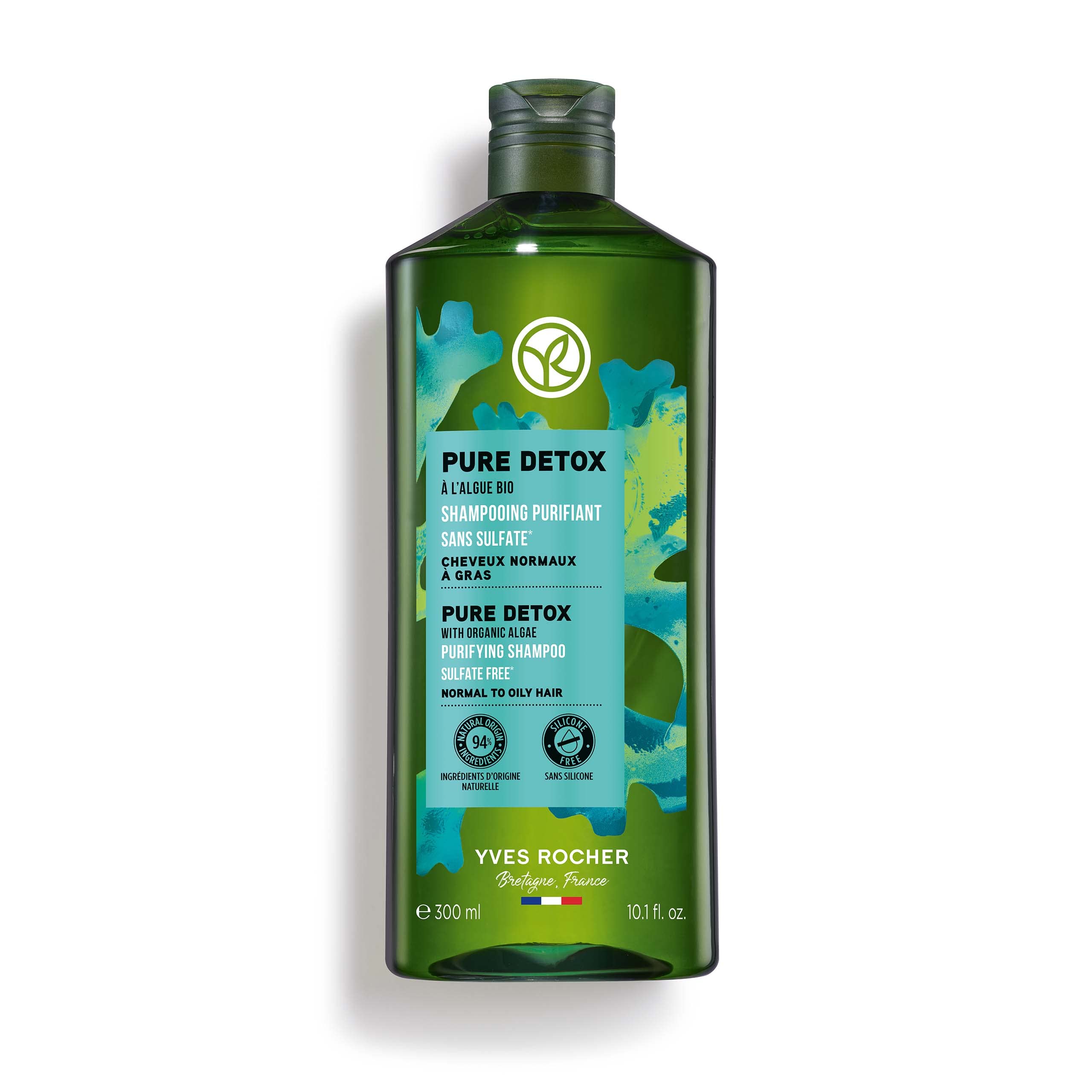 " Enriched with organic seaweed from Brittany, this purifying, sulfate-free shampoo reduces excess oil and eliminates impurities. The scalp is detoxified, and hair is light, soft, and shiny. Hair type: Normal to oily hair. Texture: Translucent gel. Benefits: Clean hair for 48 hours. Specially formulated without sulfates for normal to oily hair, it gently cleanses and purifies hair from the roots. Results: 83 - The shampoo removes impurities, product residue, and polluting particles from my scalp. 78 - My hair is shiny. 77 - My scalp and hair are clean. 75 - Removes excess oil from my scalp. Directions for use: Apply to wet hair. Massage into the scalp. Rinse. Recycling guide Place the bottle and cap in the appropriate recycling container. Since 2020, our bottles have been made from 100 recycled and recyclable plastic . Every time you recycle, you help give them a second life. Sulfate-free surfactants. Satisfaction survey conducted with 114 participants. Excluding caps, dispensers, and solvents. INGREDIENTS Aqua Water EAU • Sodium Methyl Cocoyl TAURATE • COCAMIDOPROPYL BETAINE • SODIUM COCOYL ISETHIONATE • LAURYL GLUCOSIDE • PARFUM FRAGRANCE • ASPARAGOPSIS ARMATA EXTRACT • SODIUM BENZOATE OATE • GLYCERIN • CITRIC ACID • GUAR HYDROXYPROPYLTRIMONIUM CHLORIDE • SODIUM CHLORIDE • COCO-GLUCOSIDE • GLYCERYL OLEATE • POTASSIUM SORBATE • LIMONENE • TOCOPHERYL ACETATE • HYDELE ROGENATED VEST. GETABLE GLYCERIDES CITRATE • TOCOPHEROL DIRECTIONS FOR USE Apply to wet hair. Massage into the scalp. Rinse. See moreResults: 83 - The shampoo removes impurities, product residue, and polluting particles from my scalp. 78 - My hair is shiny. 77 - My scalp and hair are clean. 75 - Removes excess oil from my scalp. Enriched with organic seaweed from Brittany, this purifying, sulfate-free shampoo reduces excess oil and removes impurities. The scalp is detoxified, and hair is light, soft, and shiny. Directions: Apply to wet hair. Massage into the scalp. Rinse. Benefits: Clean hair for 48 hours. Specially formulated without sulfates for normal to oily hair, it gently cleanses and purifies hair from the roots. Hair type: Normal to oily hair.Yves Rocher - Shampooing purifiant avec algues biologiques - Cheveux normaux à gras - Réduit l'excès de graisse et élimine les impuretés - Sans sulfates - 300 mlDESCRIPTION DU PRODUIT DESCRIPTION DU PRODUIT " Enrichi en algue bio de Bretagne, le shampooing purifiant sans sulfates réduit l'excès de graisse et élimine les impuretés. Le cuir chevelu est détoxifié et les cheveux sont légers, doux et brillants. Type de cheveux : cheveux normaux à gras. Texture : gel translucide. Avantages : cheveux propres pendant 48 heures. Spécialement formulé sans sulfate pour cheveux normaux à gras, nettoie en douceur et purifie les cheveux dès la racine. Résultats : 83 - Le shampooing élimine les impuretés, les résidus de produits et les particules polluantes de mon cuir chevelu. 78 - Mes cheveux sont brillants. 77 - Mon cuir chevelu et mes cheveux sont propres. 75 - Élimine l'excès de graisse de mon cuir chevelu. Conseils d'application : appliquer sur cheveux humides. Masser le cuir chevelu. Rincez. Guide de recyclage : déposer le flacon et le bouchon dans le récipient correspondant. Depuis 2020, nos flacons sont en plastique 100 recyclé et recyclable . Chaque fois que vous recyclez, vous contribuez à leur donner une seconde vie. Sans tensioactifs sulfatés. Enquête de satisfaction réalisée auprès de 114 sujets Sauf bouchons, doseurs et solvants. " INGRÉDIENTS Aqua Water EAU • Sodium Methyl Cocoyl TAURATE • COCAMIDOPROPYL BETAINE • SODIUM COCOYL ISETHIONATE • LAURYL GLUCOSIDE • PARFUM FRAGRANCE • ASPARAGOPSIS ARMATA EXTRACT • SODIUM BENZOM. OATE • GLYCERIN • CITRIC ACID • GUAR HYDROXYPROPYLTRIMONIUM CHLORIDE • SODIUM CHLORIDE • COCO-GLUCOSIDE • GLYCERYL OLEATE • POTASSIUM SORBATE • LIMONENE • TOCOPHERYL ACETATE • HYDÈLE ROGENATED VEST. GETABLE GLYCERIDES CITRATE • TOCOPHEROL MODE D'EMPLOI Appliquer sur cheveux humides. Masser le cuir chevelu. Rincez. Voir plus" Résultats : 83 - Le shampooing élimine les impuretés, les résidus de produits et les particules polluantes de mon cuir chevelu. 78 - Mes cheveux sont brillants. 77 - Mon cuir chevelu et mes cheveux sont propres. 75 - Élimine l'excès de graisse de mon cuir chevelu. ". Enrichi en algue bio de Bretagne, le shampooing purifiant sans sulfates réduit l'excès de graisse et élimine les impuretés. Le cuir chevelu est détoxifié et les cheveux sont légers, doux et brillants. Conseils d'application : appliquer sur cheveux humides. Masser le cuir chevelu. Rincez. Avantages : cheveux propres pendant 48 heures. Spécialement formulé sans sulfate pour cheveux normaux à gras, nettoie en douceur et purifie les cheveux dès la racine. Type de cheveux : cheveux normaux à gras.