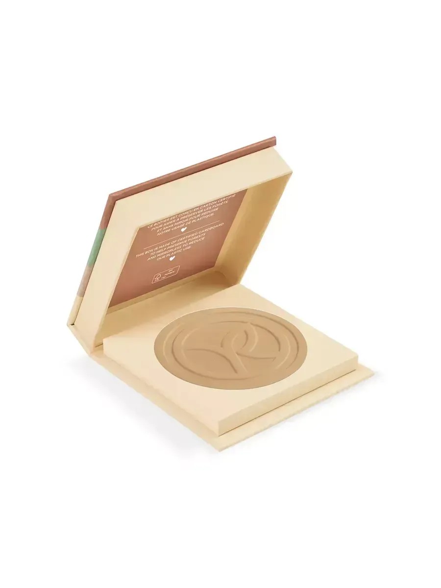 Available in 8 shades. The compact is made of certified cardboard to preserve forests and does not include a mirror to reduce the amount of plastic used. **Directions for use:** Pick up product with a powder puff or a special brush.