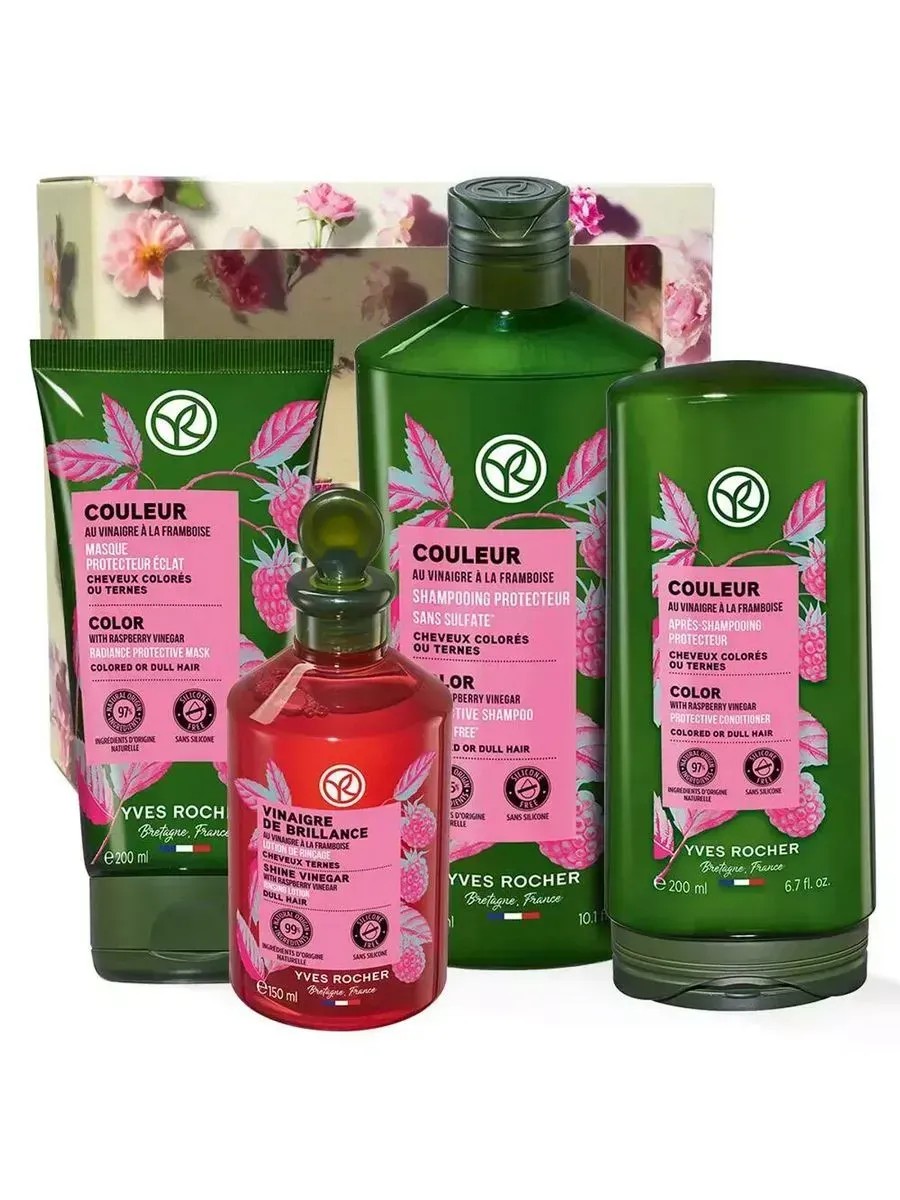 Enriched with Raspberry Vinegar, this shampoo nourishes**, protects and restores shine to hair.