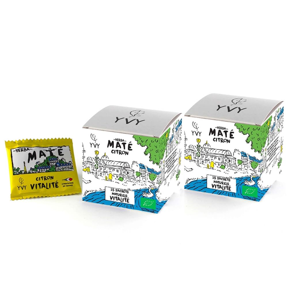 YVY YVY MAT Organic Lemon Yerba Mate | Convenient 15 Natural Mate Tea Bags | Organic Unsmoked Stemless Dust-Free Mate