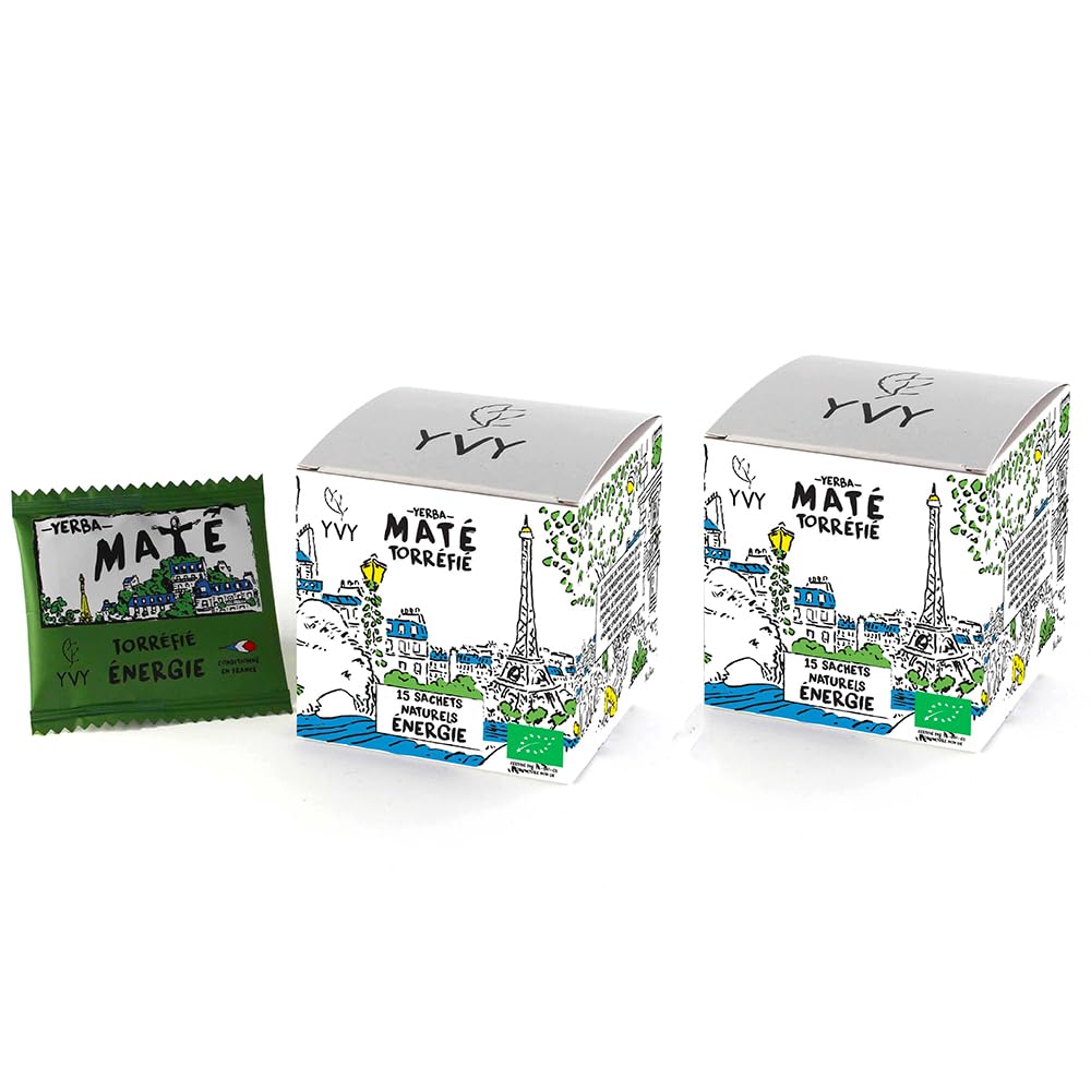 YVY YVY MAT Organic Roasted Yerba Mate Grand Cru | 15 Natural Mate Tea Bags | Unsmoked Stemless Dust-Free | Beverage