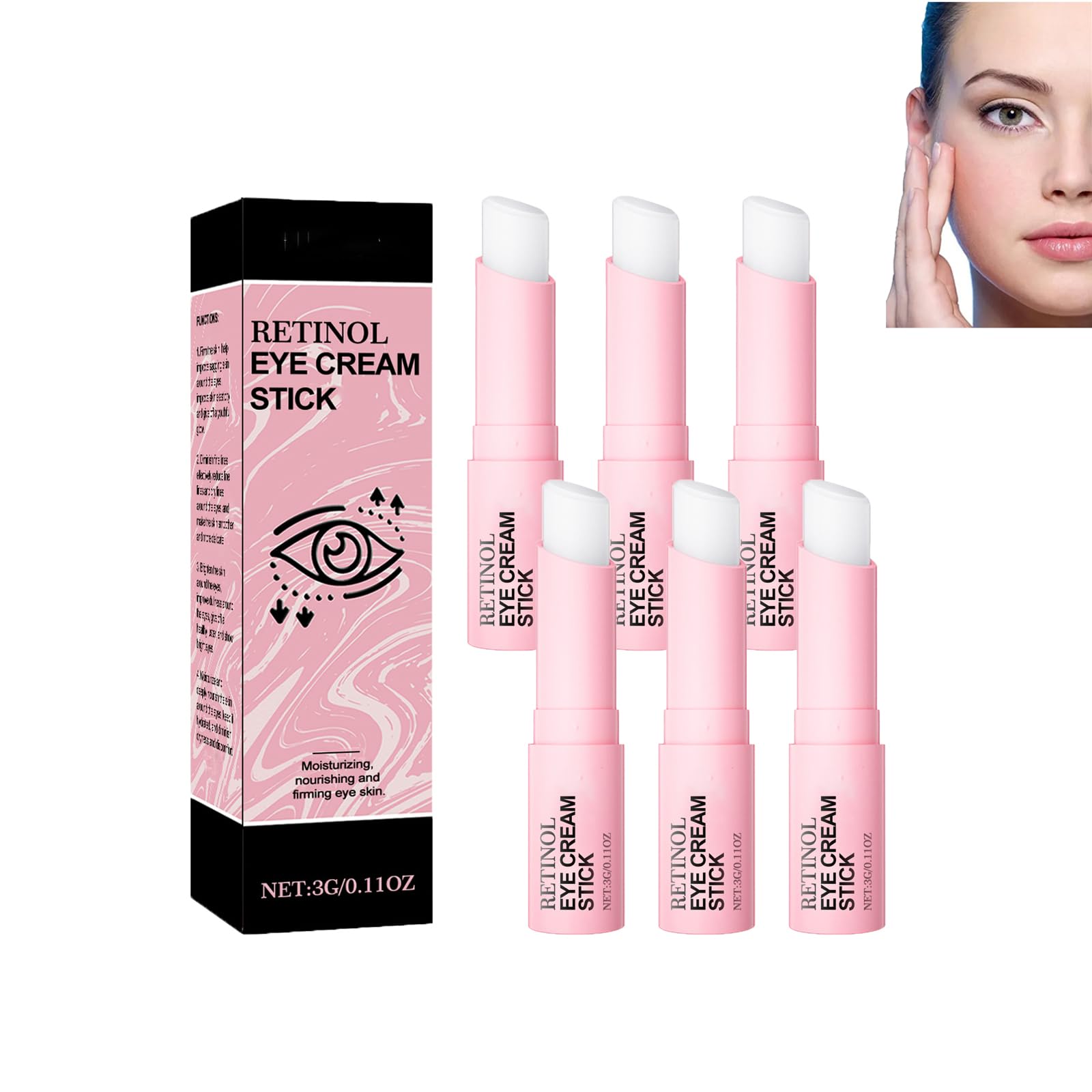 This innovative eye pencil with turmeric and retinol is expertly formulated to effectively and gently reduce signs of fatigue and aging, smoothing the appearance of fine lines and wrinkles. Thanks to its brightening and hydrating properties, it retains moisture, firms, and revitalizes the delicate skin around the eyes, diminishing the appearance of wrinkles and dark circles. Experience intense hydration that reduces puffiness and improves skin elasticity. The eye area will appear fresh and revitalized. Name: Retinol Eye Pencil Weight: 3g Shelf Life: 3 years Skin Type: Suitable for all skin types Package Contents: 1 2 3 6 Retinol Eye Pencils Note: 1. Please refer to the size information due to measurement differences. 2. Due to differences in monitors, the color of the image may be slightly different from the actual product. Please refer to the actual product. SAFETY WARNING No