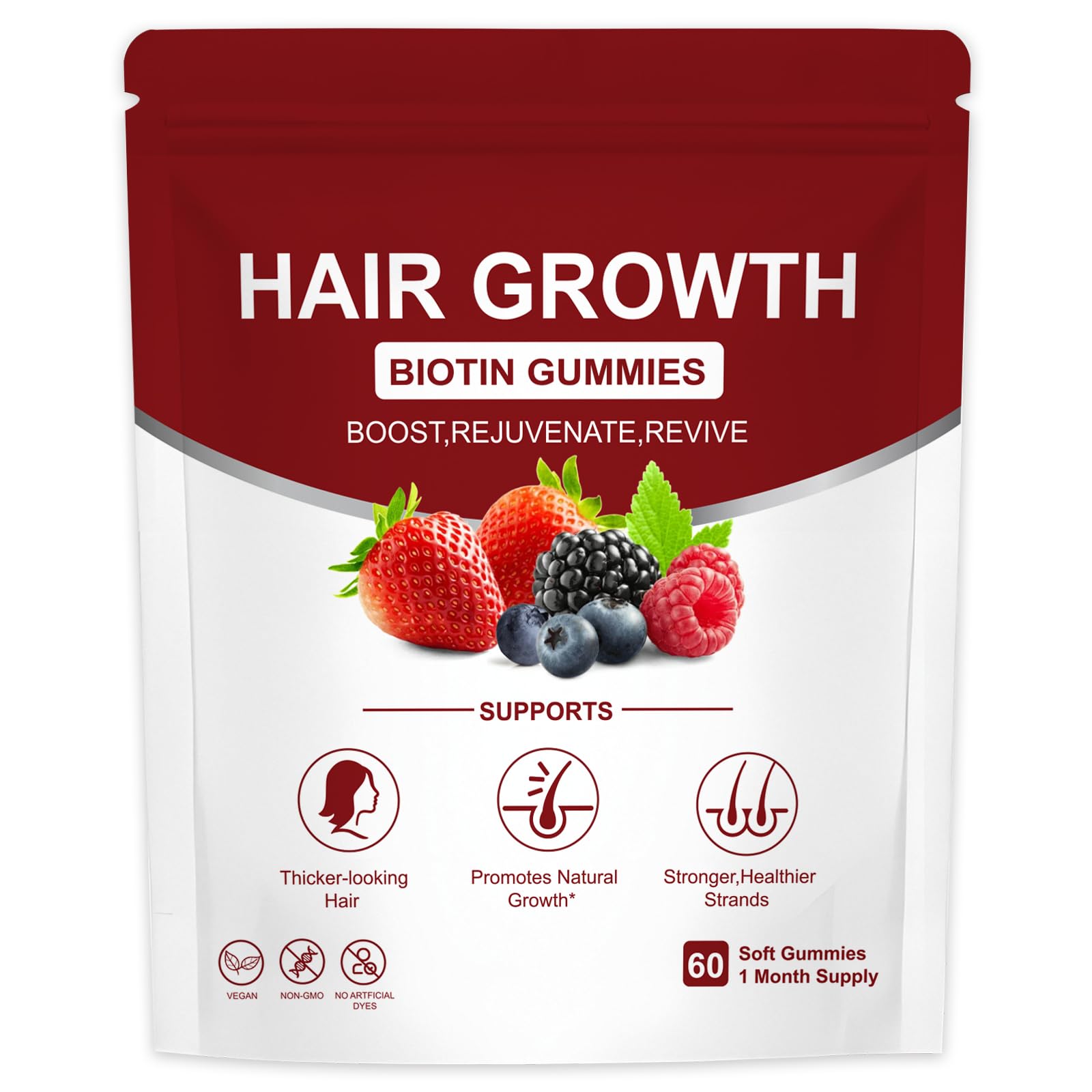 YYLLYY Hair Growth Vitamins Gummies | with Biotin Vitamin C & E Botanical Extracts | Supports Healthy Hair Growth & Strength Skin & Nail Care | Mixed Berry Flavor | Non-GMO