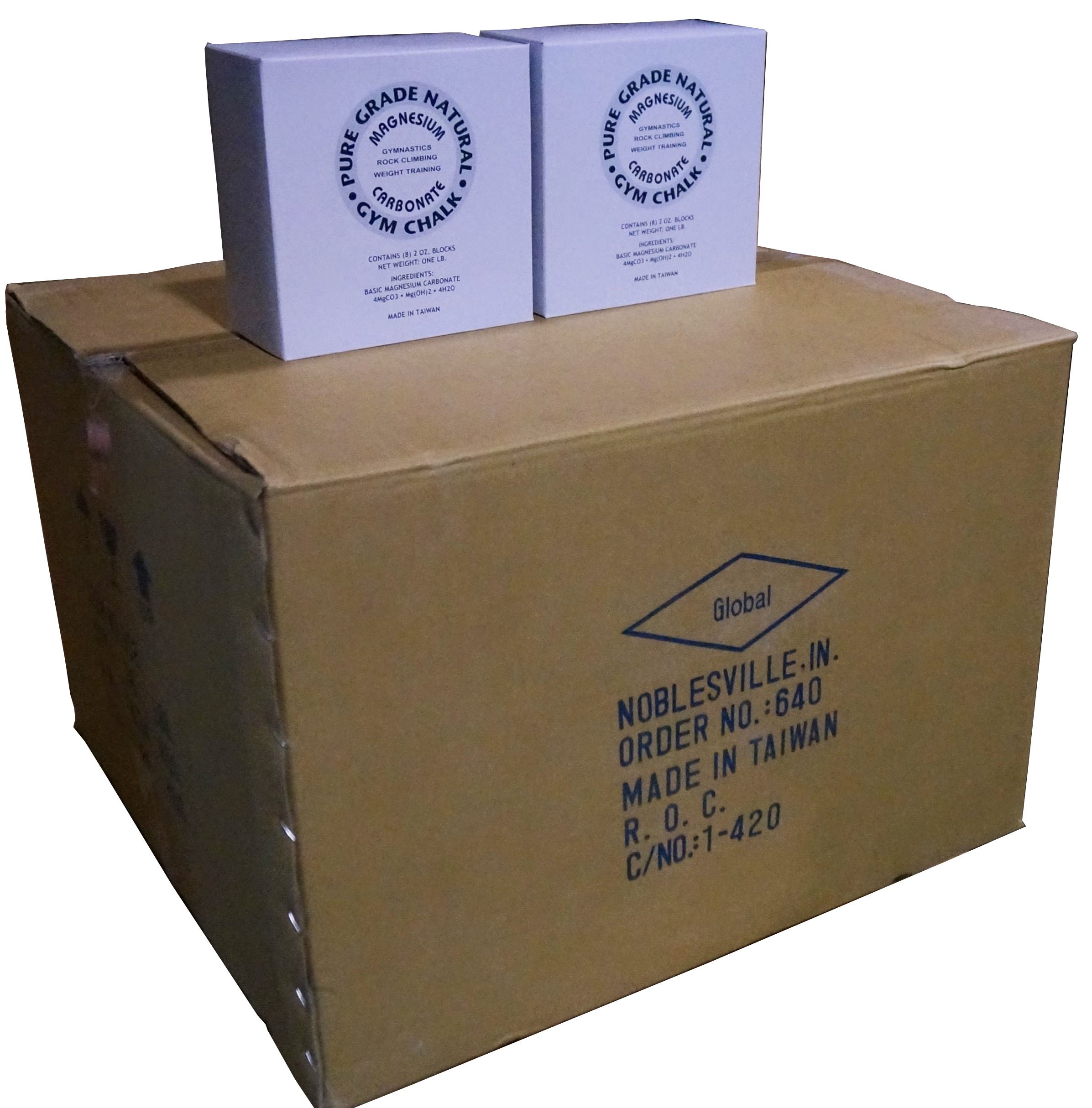 100% Pure, High Quality Magnesium Carbonate. 36 pound case of block chalk for gymnastics, climbing, and weight lifting. Greatly improves grip for those grip-intensive activities. Contains 36 one pound boxes totalling 288 two ounce individually wrapped blocks of chalk.