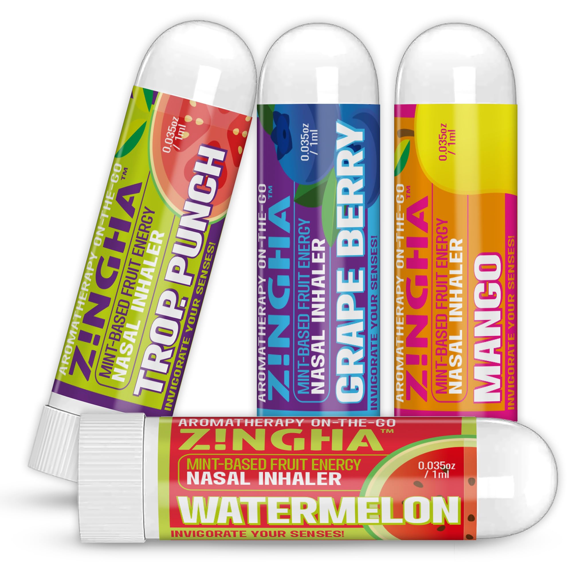 Z!NGHA Natural Aromatherapy Nasal Stick Boost Focus & Enhance Breathing | Portable Sinus Relief & Relaxation Nasal Inhaler Stick | Essential Oil Blend for Stress and Congestion (4PK Fruit Mix)