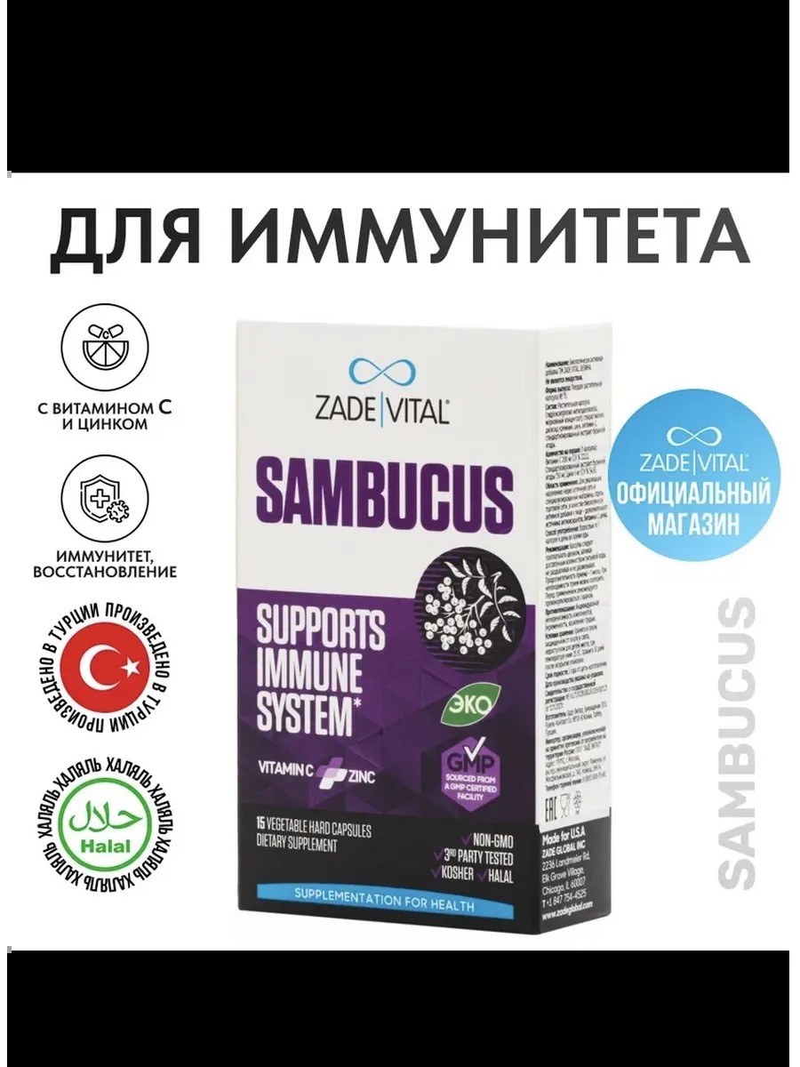 Zade Vital Elderberry Extract is an original complex that contains a unique combination of elderberry extract, zinc, and vitamin C.