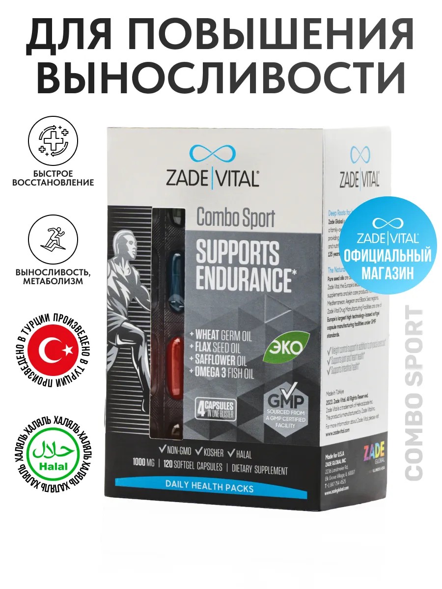 A premium product called "Combo Sport" from Zade Vital is a unique complex of vitamins, minerals, and dietary supplements, developed specifically for active people who care about their health and fitness. In each capsule, you will find the natural power of 4 oils, including cold-pressed oils - a unique source of fats and fatty acids.