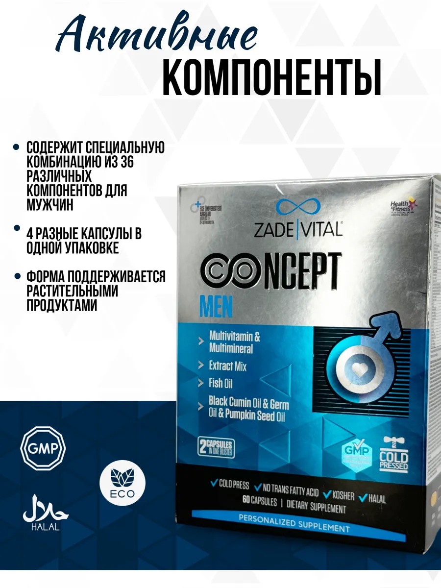 SEO-фразы: витамины для мужчин, комплекс витаминов для энергии, поддержка иммунитета, Zade Vital Concept Men, витамины с омега-3 и минералами, мужское здоровье 60 капсул.