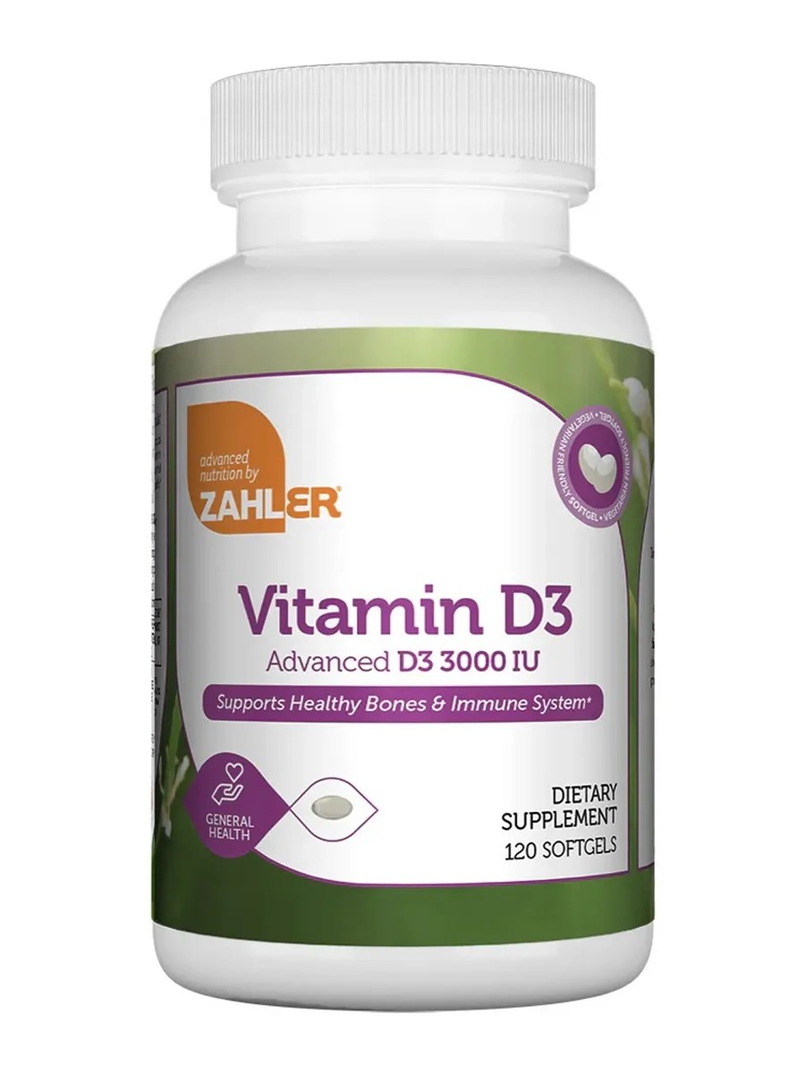 Zahler Advanced Nutrient ComplexSupports healthy bones and a strong immune systemSupports overall health75 mcg (3,000 IU) per servingDietary SupplementFeel Better, EverydayKosherPareve CertifiedThis product is manufactured in a Good Manufacturing Practices (GMP) registered facility (GMP)Non-GMOGluten-FreeDairy-FreeSoy-FreeVegetarianEnhanced D3Vitamin D3 is an important nutrient for overall health. However, the typical diet does not provide the recommended amount of this vitamin. Research shows that vitamin D3 not only supports bone health, but also supports overall health.Suggested UseTake 1 softgel daily with food, or as directed by a healthcare professional.