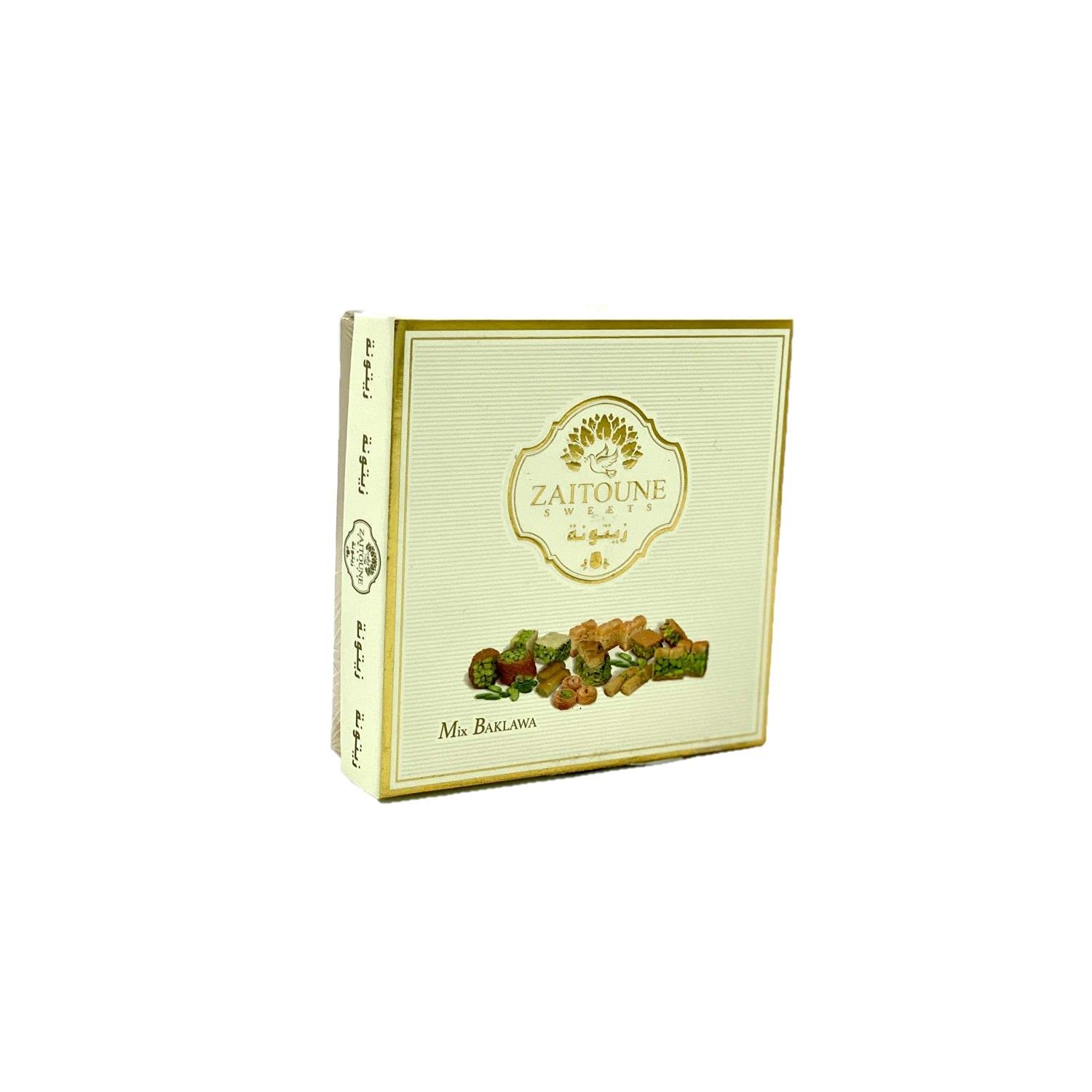 Originating in the Middle East, Turkey, the Balkans, and the Maghreb, baklava, a traditional, crispy, and generous pastry, is a delight to share. Baklava is made primarily with angel hair pasta (filo pastry), butter (clarified or unclarified), and sugar (syrup or honey). Many variations are available: with hazelnuts, almonds, pistachios, cashews, and more. Presented in a gold gift box, this assortment of baklava makes an ideal present. Ingredients: Wheat flour, starch, butter, sugar, water, salt, powdered milk, cashews, pistachios. Allergens: Gluten, milk, tree nuts. Storage instructions: Store at room temperature (15-20 C), away from heat and humidity, before and after opening. Suggested use: This treat is a delightful gift to give or enjoy yourself during a relaxing break with tea, coffee, or maté. Product information: - Net weight: 100g - Origin: Turkey Nutritional values per 100g: - Energy: 2318kJ 554kcal - Fat: 36.9g, of which saturates 13.27g - Carbohydrate: 48.4g, of which sugars 23g - Protein: 10.4g - Salt: 0.1g Packaging: Presentation box. Full details are available on the product packaging. The information on this page is for guidance only. We encourage you to read the information on the product label, especially regarding food allergies. SAFETY WARNING Full details are available on the product packaging. The information on this page is for guidance only. We encourage you to read the information on the product label, especially regarding food allergies.Assortiment baklava - Zaitoune - boîte 100gDESCRIPTION DU PRODUIT DESCRIPTION DU PRODUIT Originaire des pays du Moyen Orient, en Turquie, dans les pays des Balkans et du Magrheb, le baklava, pâtisserie traditionnelle croustillante et généreuse est un plaisir à partager. Le baklava ou baklawa est composé à la base de cheveux d'ange (pâte filo), de beurre (clarifié ou non) et de sucre (sirop ou miel). De très nombreuses variantes sont proposées : aux noisettes, aux amandes, aux pistaches, aux noix de cajou. Présenté en coffret doré, cet assortiment de baklava est un cadeau idéal à offrir. Ingrédients : Farine de blé, amidon, beurre, sucre, eau,sel, lait en poudre, noix de cajou, pistache. Allergènes : Gluten, lait, fruits à coques. Mode de conservation : A conserver à température ambiante (15 20 C), à l'abri de la chaleur et de l'humidité avant et après ouverture. Conseil d'utilisation : Cette douceur est un plaisir à offrir en cadeau ou à s'offrir le temps d'une pause gourmande accompagnée d'un thé, café ou maté. Informations produit : - Poids net : 100g - Origine : Turquie Valeurs nutritionnelles pour 100g : - Energie : 2318kJ 554Kcal - Lipides : 36,9g dont acides gras saturés 13,27g - Glucides : 48,4g dont sucres 23g - Protéines : 10,4g - Sel : 0,1g Emballage : Boîte de présentation. Détail complet et disponible sur l'emballage du produit. Les informations présentes sur cette page sont à titre indicatif. Nous vous invitons à prendre connaissance des informations sur l'étiquette du produit, en particulier concernant les allergies alimentaires. AVERTISSEMENT DE SÉCURITÉ Détail complet et disponible sur l'emballage du produit. Les informations présentes sur cette page sont à titre indicatif. Nous vous invitons à prendre connaissance des informations sur l'étiquette du produit, en particulier concernant les allergies alimentaires.