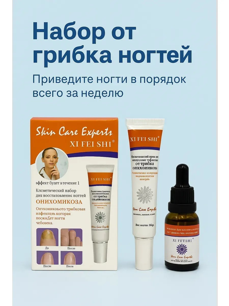 Косметический набор от грибка ногтей — эффективное средство для восстановления повреждённых ногтевых пластин. Благодаря активной формуле крем и сыворотка действуют в комплексе: устраняют грибковую инфекцию, способствуют регенерации тканей, укрепляют ногти и возвращают им здоровый вид.