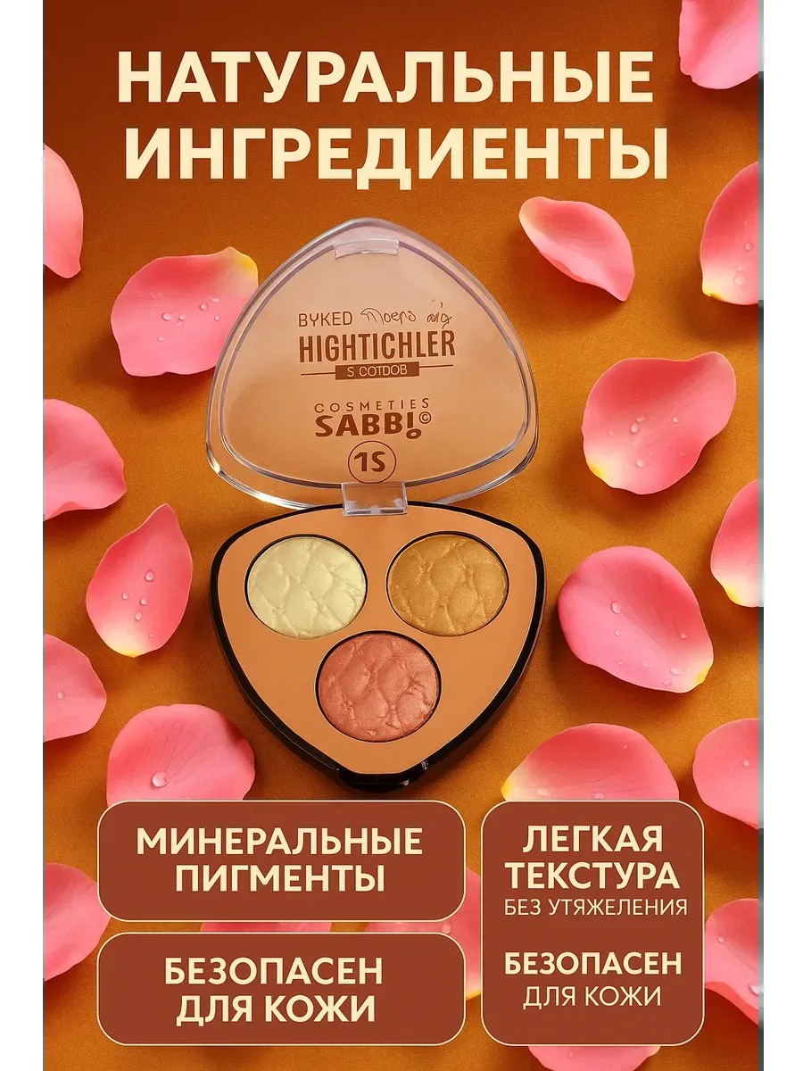 Хайлайтер SABBI Cosmetics — палетка из 3 оттенков для сияющего и безупречного макияжа.