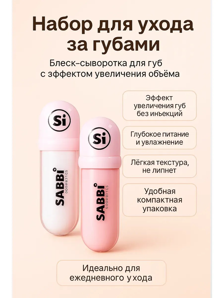 Набор для ухода за губами — это инновационный блеск-сыворотка для губ с эффектом увеличения объёма. В комплект входят 2 средства: дневной уход с лёгкой текстурой и вечерний питательный бальзам. Они обеспечивают увлажнение, питание и стойкий уход, делая губы более гладкими и соблазнительными. Удобный флакон с аппликатором позволяет легко наносить средство в любых условиях. Подходит для ежедневного применения, помогает бороться с сухостью и трещинками, а также визуально придаёт губам дополнительный объём.