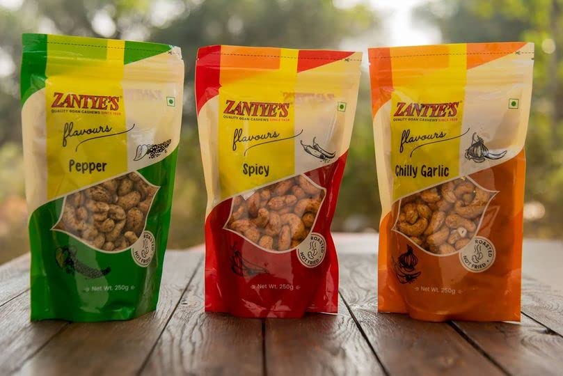 Zantye's Original Goan Cashews 3 Flavours box Spicy/ChillyGarlic/Pepper Flavour