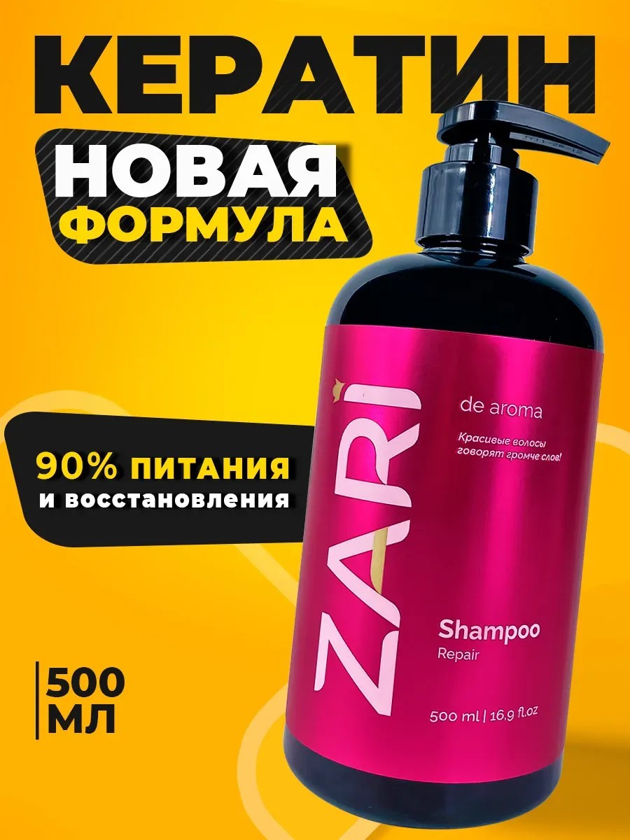 Zari de Aroma Rubin Keratin Restorative Shampoo combines professional hair care with a sensual scent. This keratin shampoo has a thick, moderately dense consistency and is transparent with a pearlescent sheen. It spreads evenly over the scalp and rinses easily. Soft surfactants gently cleanse and maintain the scalp's moisture balance. Hydrolyzed keratin restores damaged hair, strengthening its structure from within, leaving it strong, smooth, and shiny. The shampoo's perfumed scent is a rich bouquet of ripe berries and the brightness of juicy red grapes, enveloping the hair during washing, creating a pleasant sensation and leaving a delicate trail. This strengthening shampoo is suitable for all hair types and is suitable for everyday use, especially damaged, brittle, and split ends. Keratin shampoo will be appreciated by those with color-treated hair and blonde locks, with the exception of bright colors and platinum shades. This keratin shampoo will improve the condition of hair after intensive bleaching and frequent heat treatments with a hair dryer or flat iron. This cleansing shampoo maintains volume at the roots and frizz along the lengths, without weighing down fine hair. An additional benefit is the included dispenser. The dispenser allows you to easily measure the required amount of product, avoiding unnecessary use. With daily use, this restorative keratin shampoo will make curls thicker, more elastic, and silkier, with a cumulative effect. Looking for the perfect gift for the upcoming holidays? This perfumed keratin shampoo makes a wonderful gift for both men on February 23rd and women on March 8th. Treat your loved ones to luxurious care and a sensual scent with Zari de Aroma shampoo!