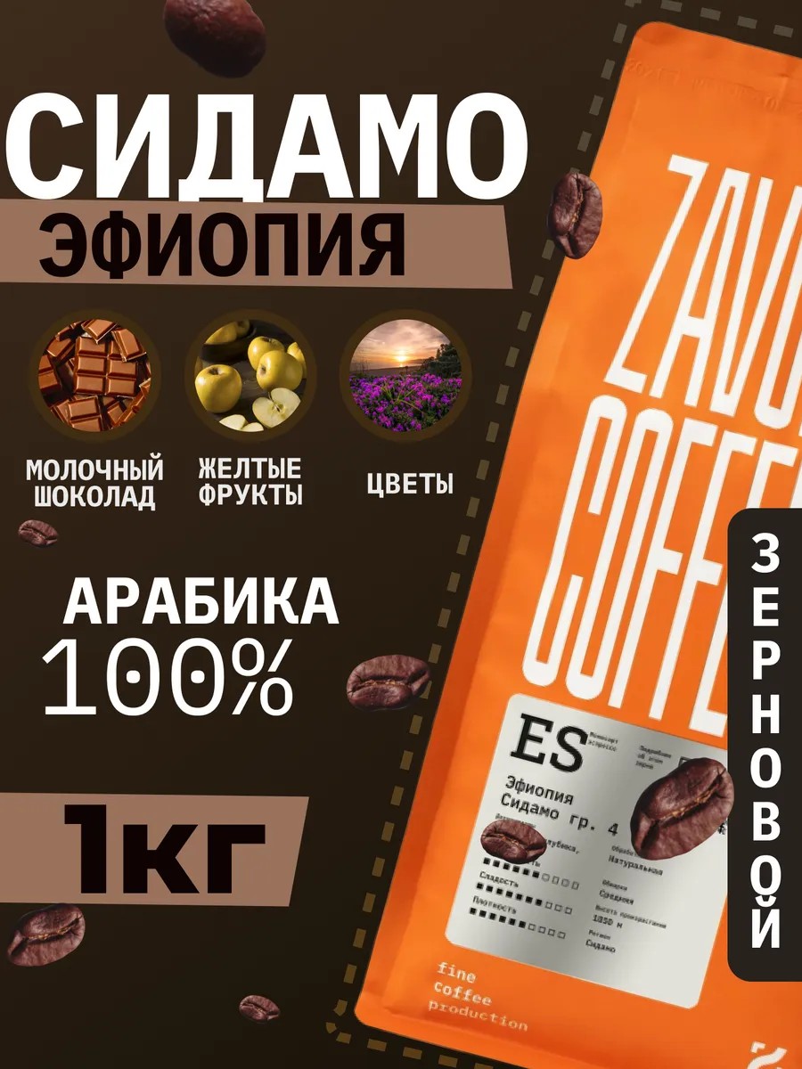 Кофе в зернах Эфиопия Сидамо гр.4 1 кг — 100% арабика