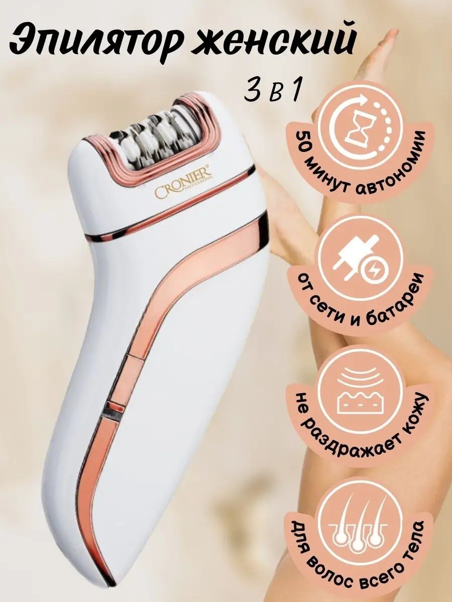Многофункциональный эпилятор Cronier CR-8806 станет Вам идеальным помощником при уходе за собой. **Эпилятор Cronier - 8806 зарекомендовал себя, как достойная альтернатива таких брендов как philips, braun и rowenta.** Он сохранит кожу нежной и гладкой с головы до ног. Этот стильный беспроводной эпилятор предназначен для сухого и влажного применения , что делает его идеальным. **Благодаря бесконтактному воздействию на волоски исключает вероятность пореза и снижает раздражающие ощущения. Лезвия депилятора не кусают и не щиплют кожу, стальные ножи электробритвы безболезнено вырывают волосики, не оставляя следов. Мощный мотор 5 Вт подходит для всех типов волос, с легкостью удаляет длинные и короткие волосы. В подарок мочалка для смягчения кожи перед бритьем. Фонарик для подсветки в области бритья не даст пропустить даже мелкие волоски. Домашний эпилятор стал незаменимым помощником женщин, подходит для лица, подмышек, ног, стоп и зоны бикини. Триммер работает от аккумулятора до 50 минут.**