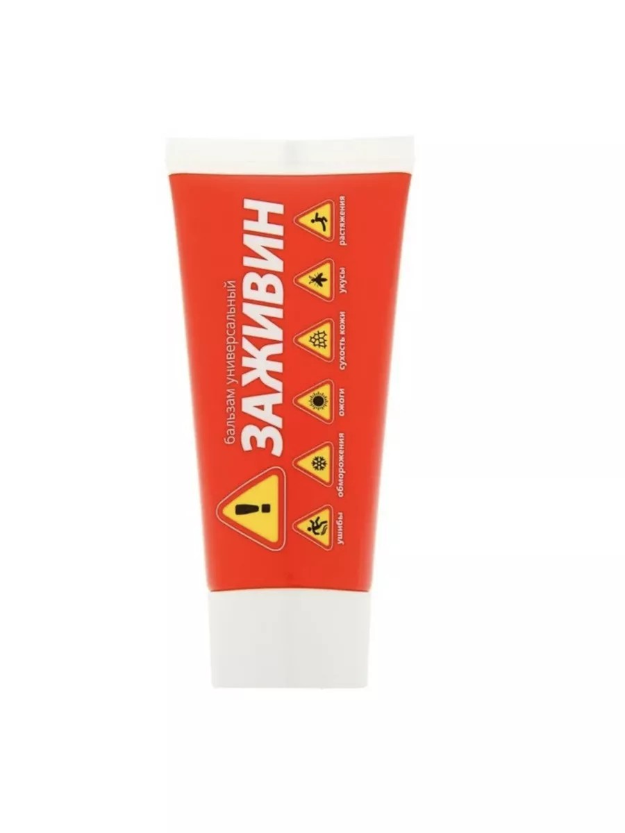 The universal balm "Zazhivin" contains a special complex of natural extracts. It helps with sunburn, cracked and dry skin, bruises and sprains, and itching from insect bites. Before use, read the instructions and precautions on the packaging. Volume: 50 ml.