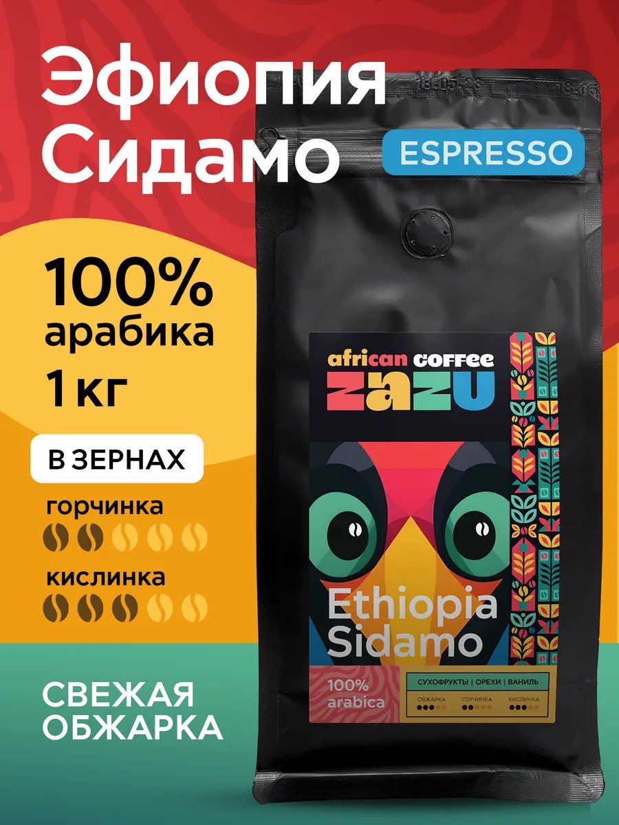 ZAZU Coffee Кофе в зернах 1 кг Эфиопия Сидамо