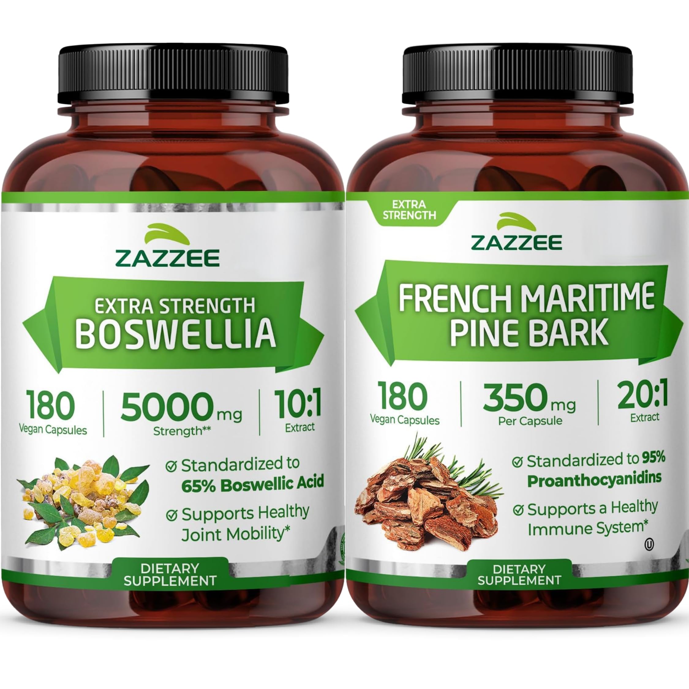 Zazzee Enhanced Comfort & Mobility Support Bundle | French Maritime Pine Bark Extract Capsules Plus Super Concentrated Boswellia Extract | Non-GMO Vegan & ISO Lab Tested (6 Month Supply)
