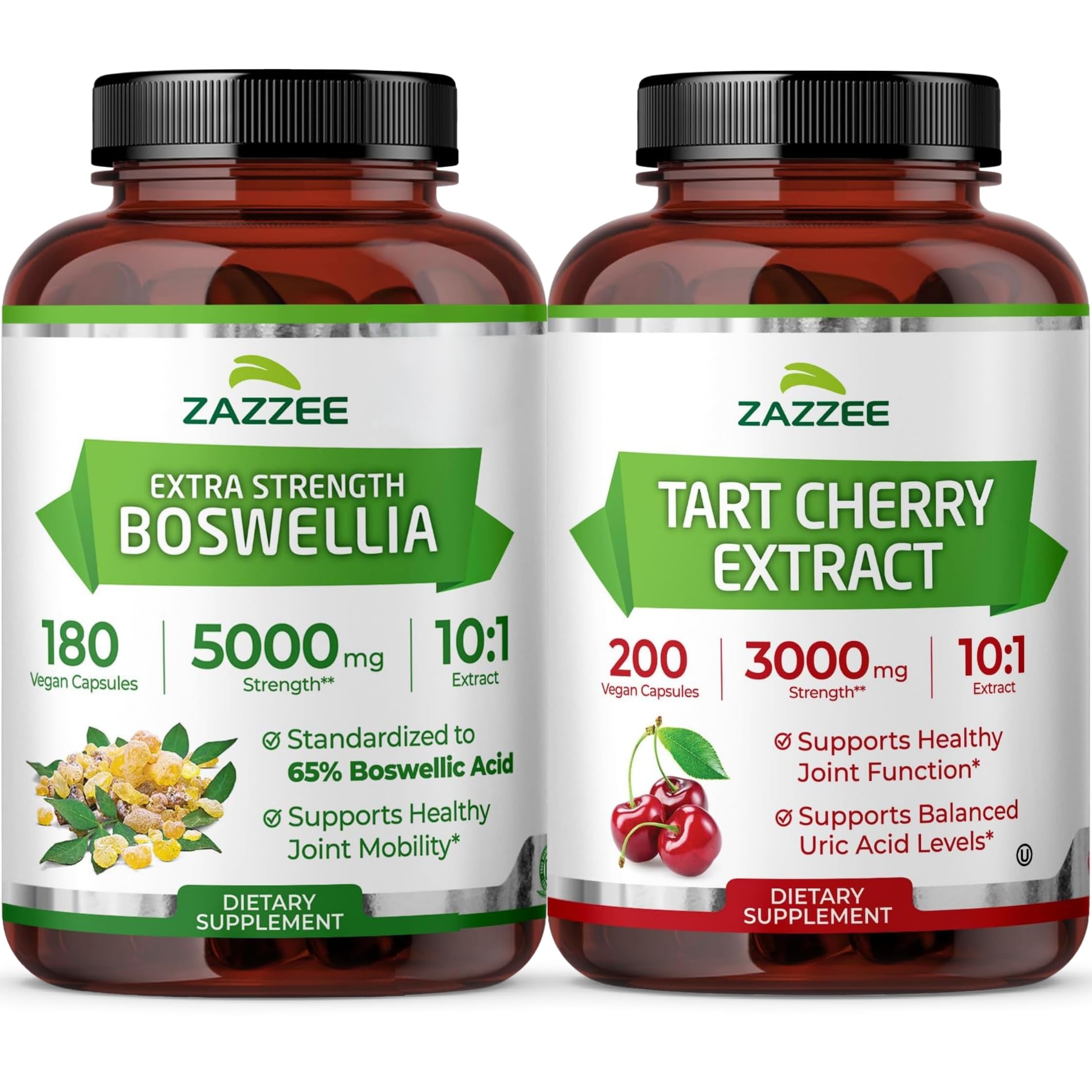 Zazzee Enhanced Comfort Recovery & Mobility Support Bundle | 10:1 High Strength Tart Cherry Capsules Plus Super Concentrated Boswellia Extract | Non-GMO Vegan & ISO Lab Tested (Over 6 Month Supply)