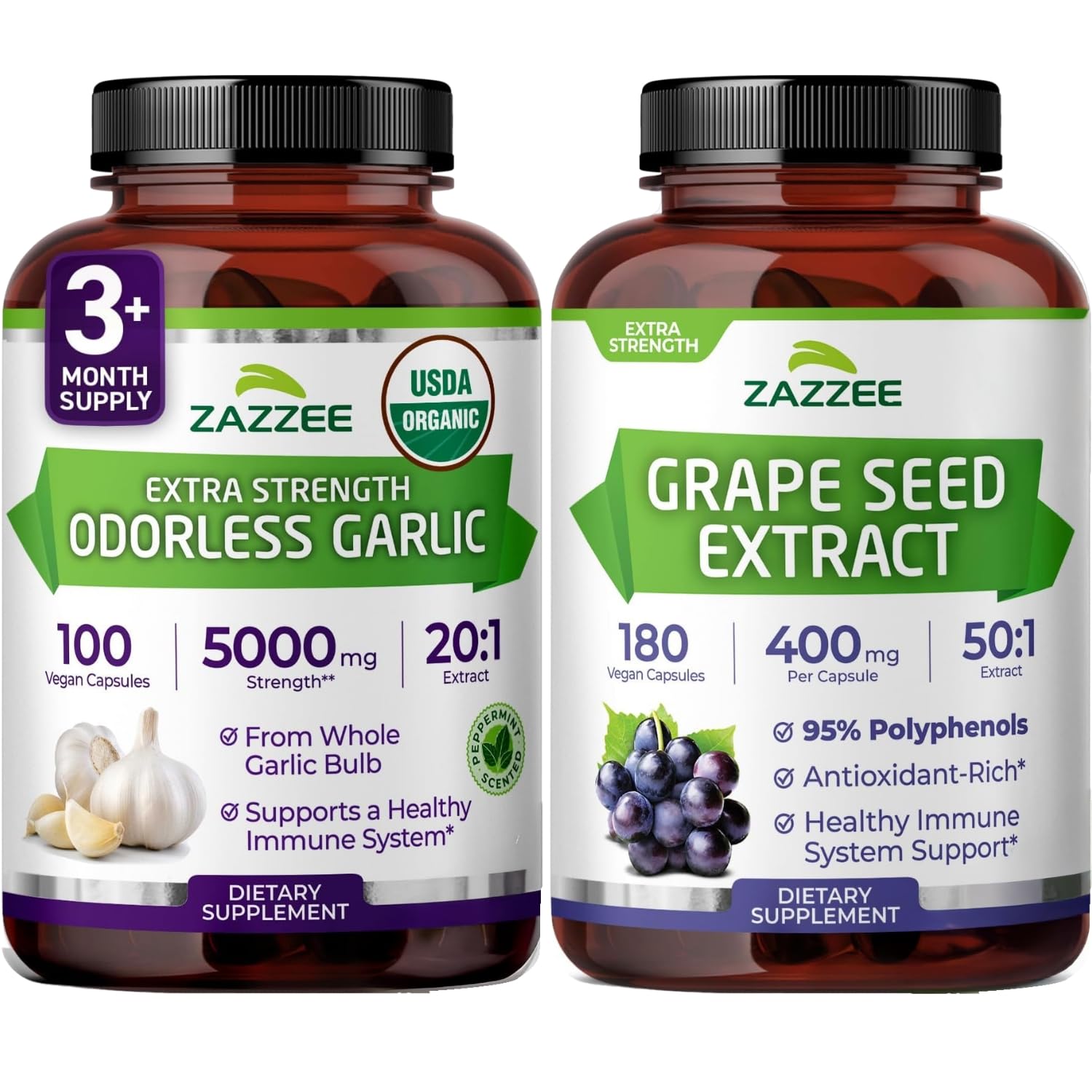 Zazzee Herbal Cardio Support Bundle | 50:1 Grape Seed Extract Capsules Plus USDA Organic Garlic Capsules | Non-GMO Vegan & ISO Lab Tested